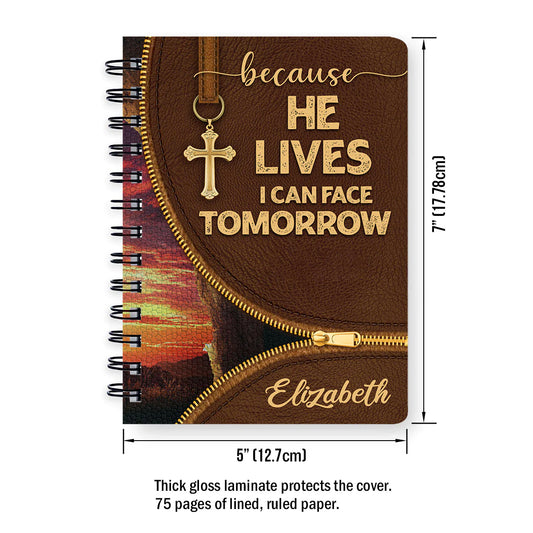 Christianart Spiral Journal, Because He Lives I Can Face Tomorrow, Personalized Spiral Journal, Jesus Spiral Journal.