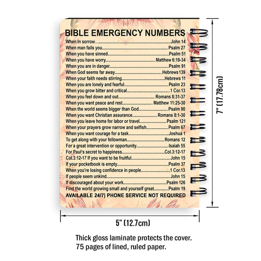 Christianart Spiral Journal, Bible Emergency Numbers, Personalized Spiral Journal, Jesus Spiral Journal.