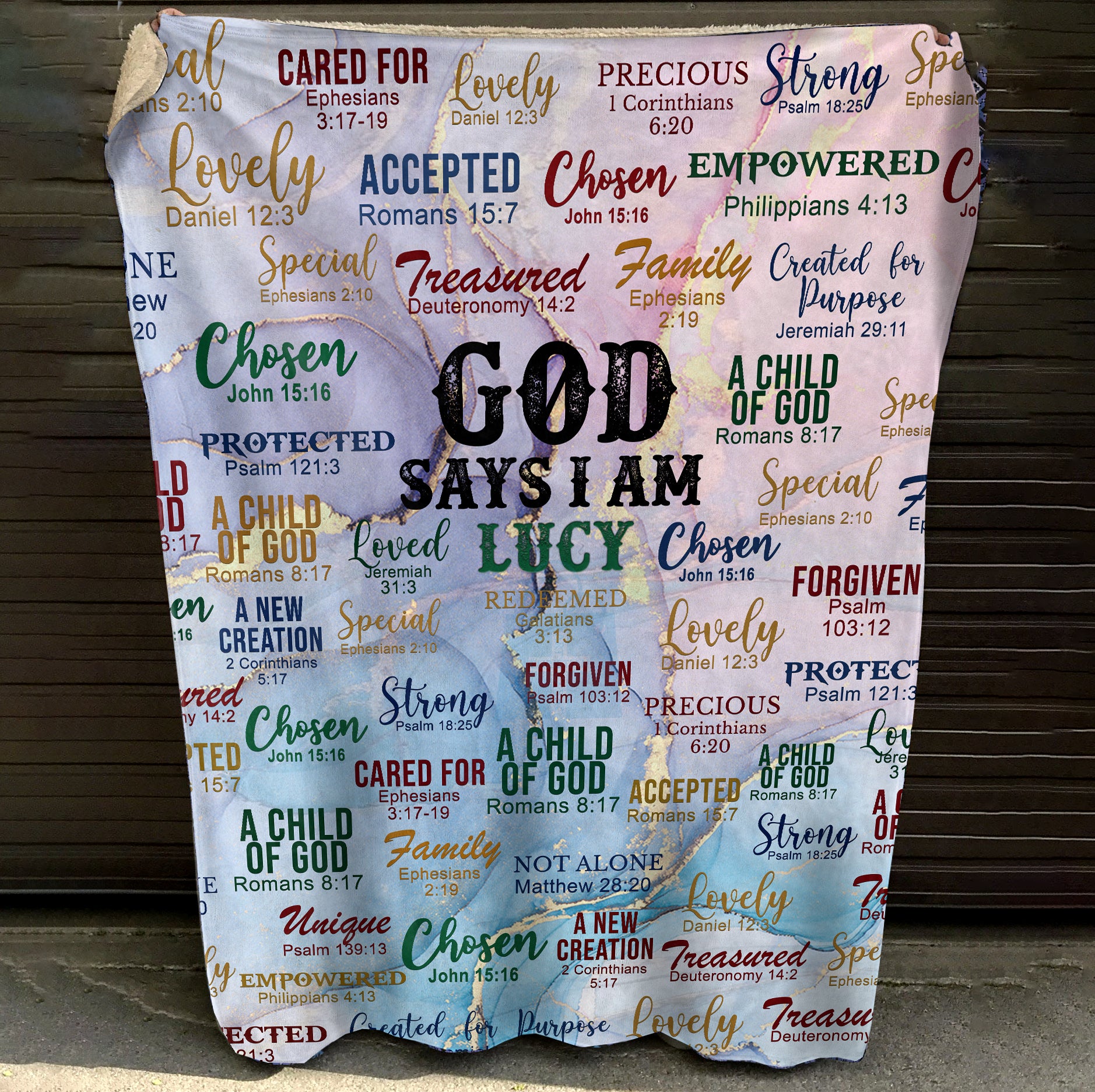 Christianart Blanket, God Says I Am, Christian Blanket, Bible Verse Blanket, Personalized Blanket, Christmas Gift, CABBK01111123.