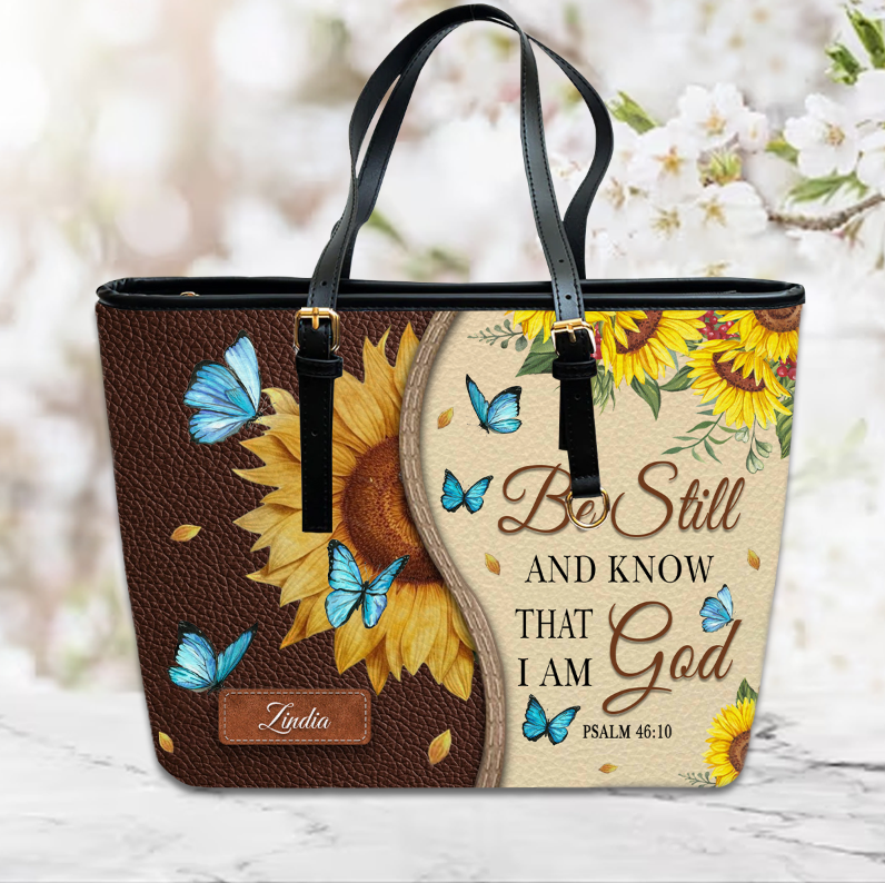 Christianart Designer Handbags, Be Still And Know That I Am God Psalm 46:10 Sunflower Butterfly, Personalized Gifts, Gifts for Women, Christmas Gift.