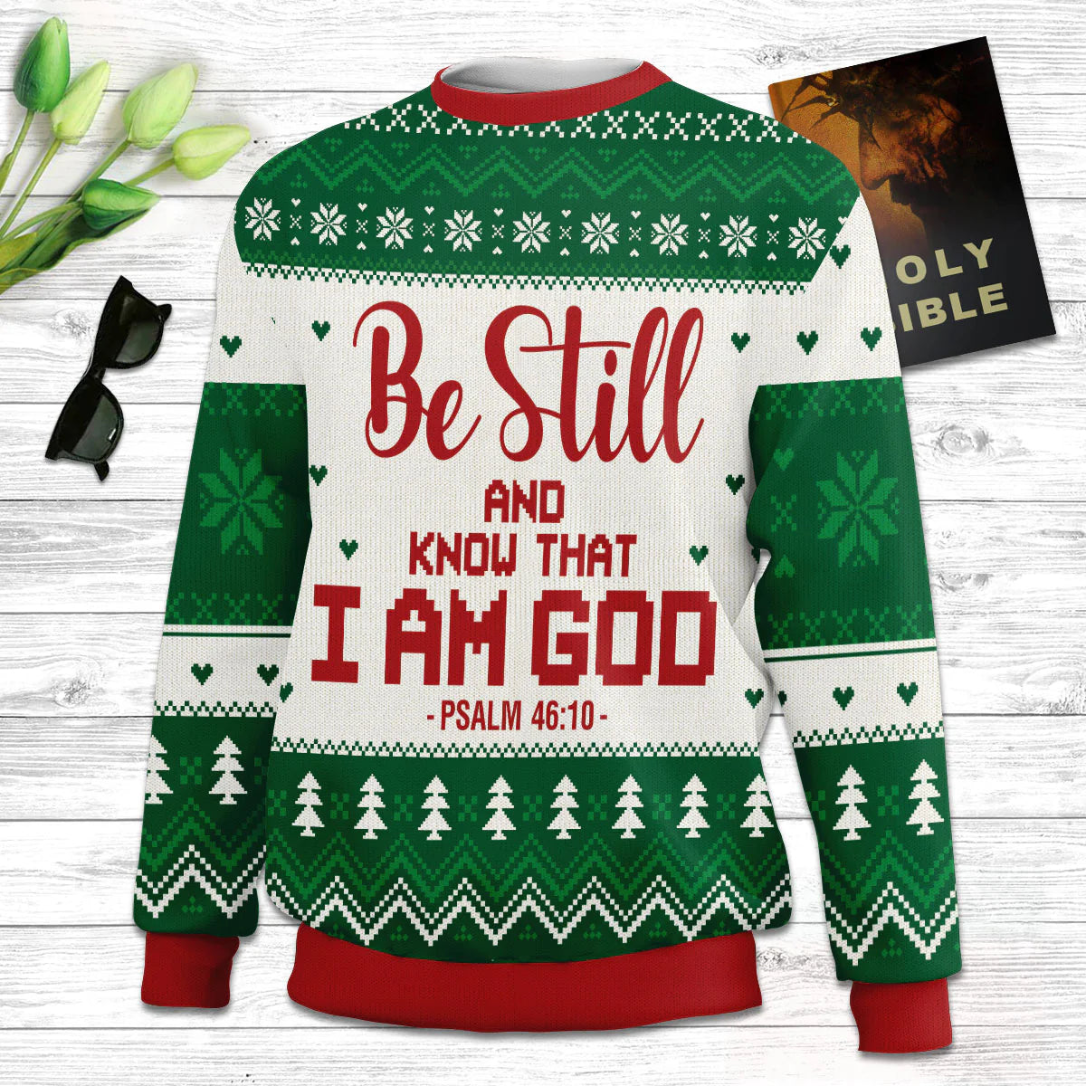 Christianartbag 3D Sweater, Be Still And Know That I Am God Psalm 46:10, Unisex Sweater, Christmas Gift.