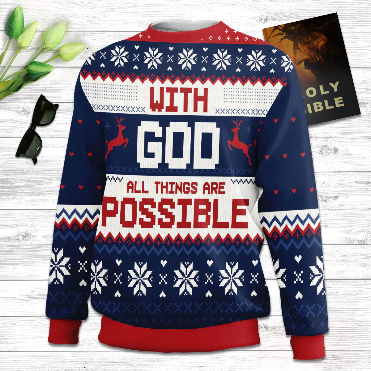 Christianartbag 3D Sweater, With God All Things Are Possible Matthew 19:26, Unisex Sweater, Christmas Gift.
