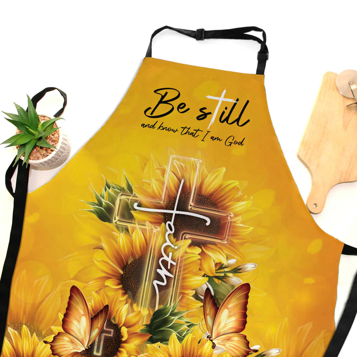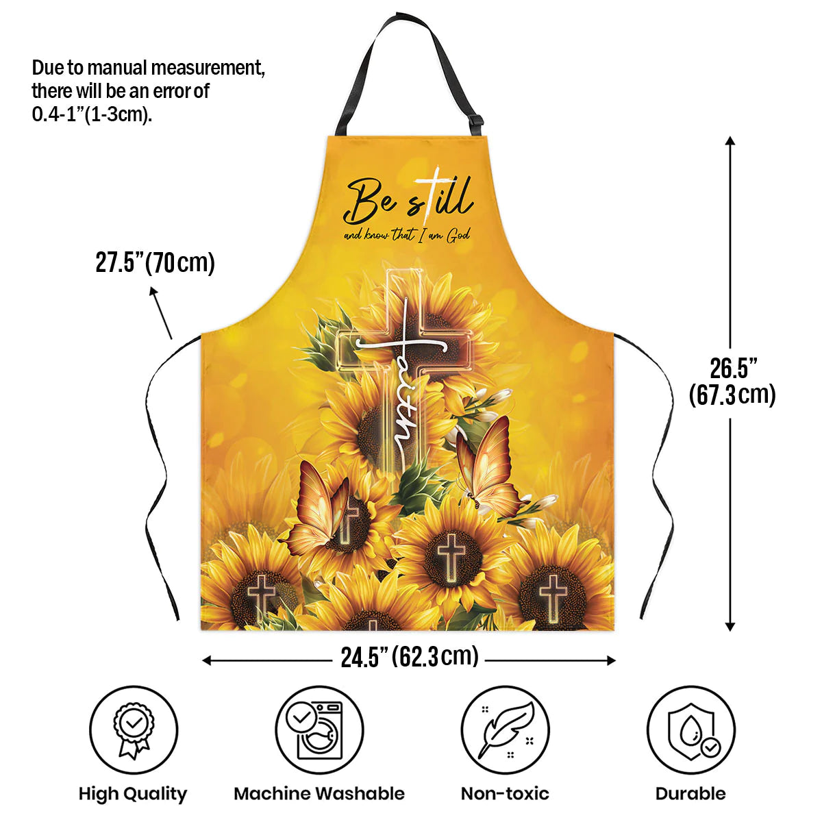 Christianartbag Apron, Be Still And Know That I Am God Psalm 46:10, Sunflower & Faith Cross, Apron for Women, Gift For Women, Christmas Gift,