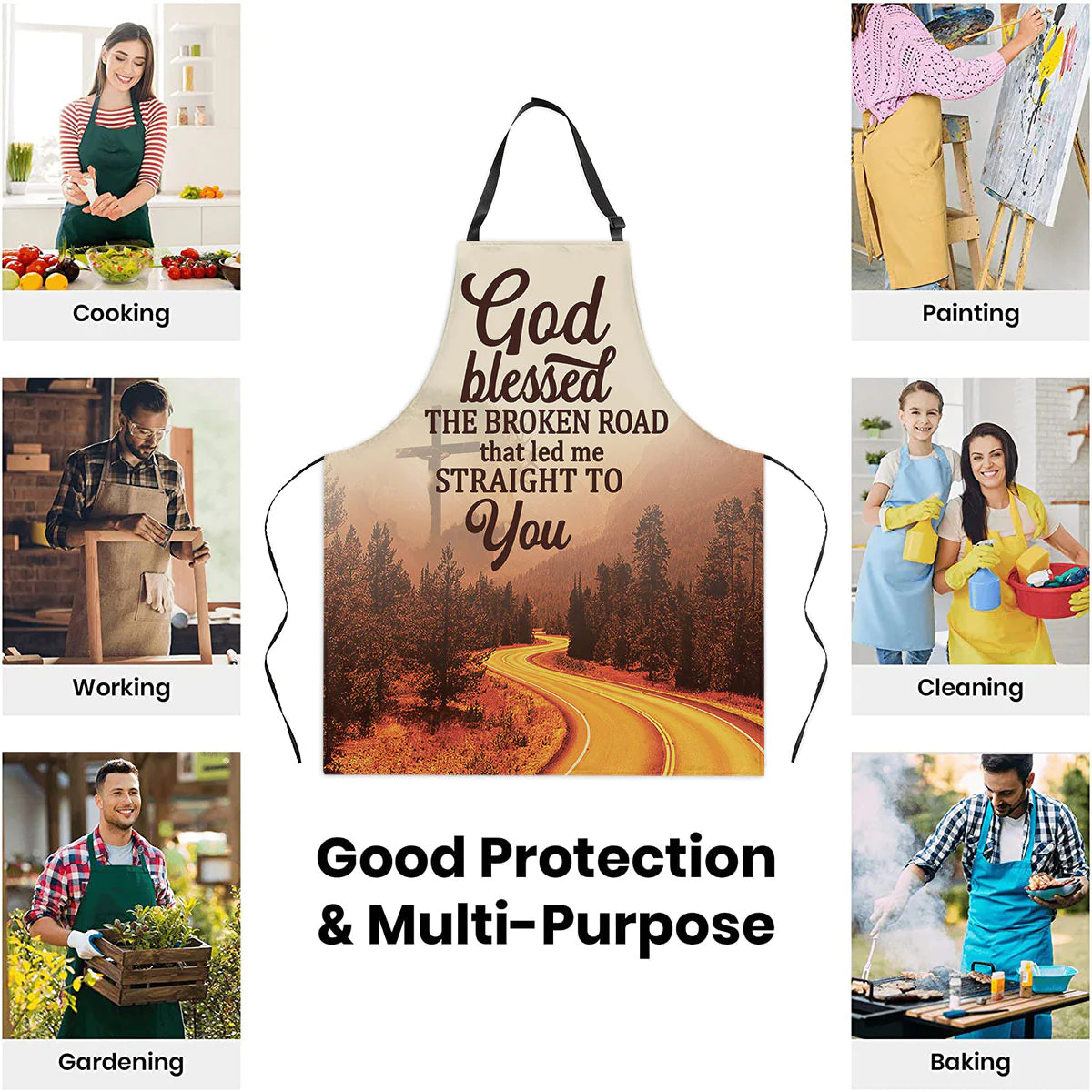 Christianartbag Apron, God Blessed The Broken Road, Apron for Women, Gift For Women, Christmas Gift,