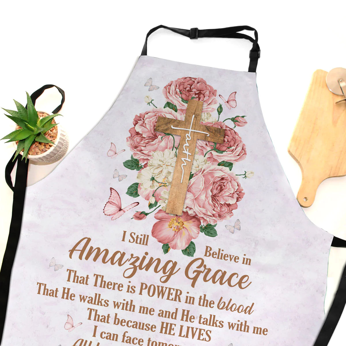 Christianartbag Apron, I Still Believe In Amazing Grace, Flower And Cross, Apron for Women, Gift For Women, Christmas Gift,