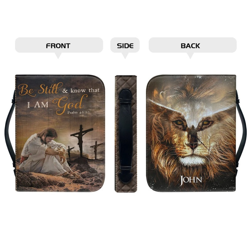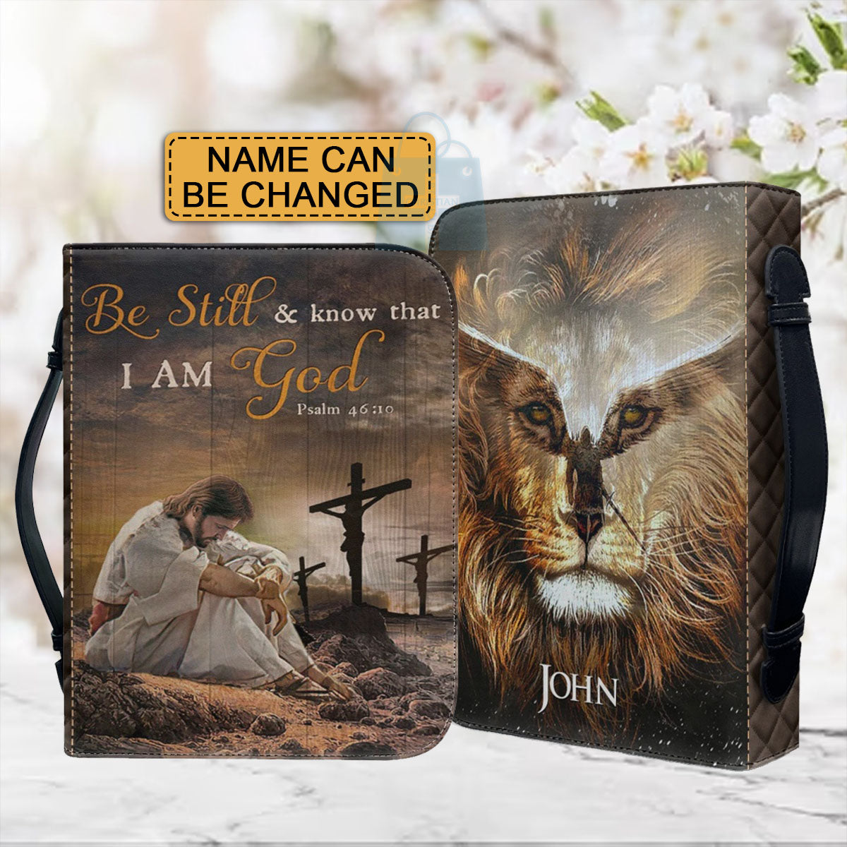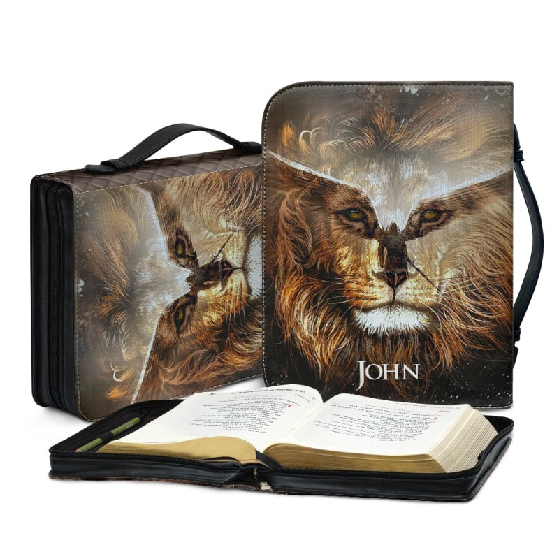 Christianartbag Bible Cover, Divine Presence Bible Cover with Custom Name - Serene Lion and Savior Imagery, CAB01022324.