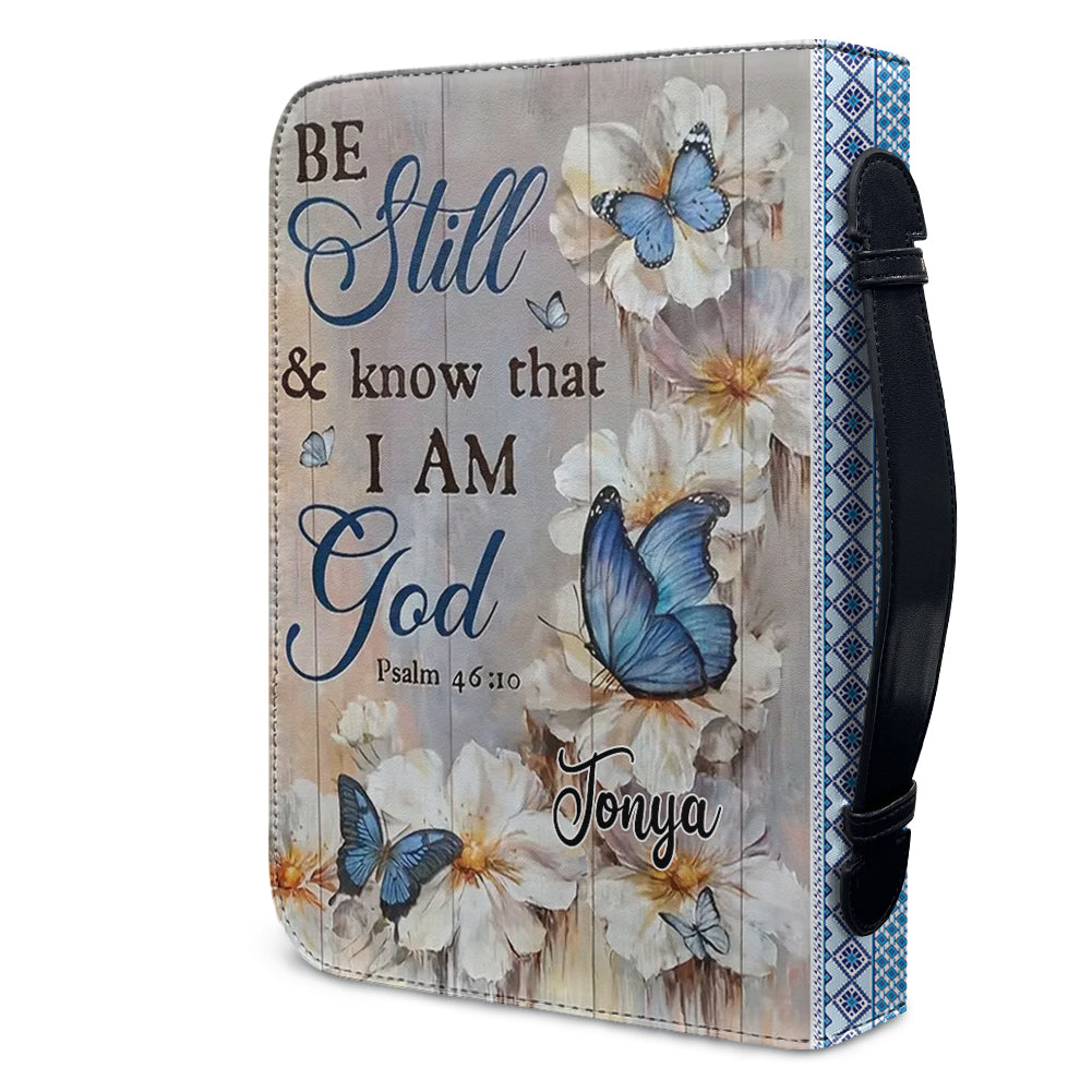 Christianartbag Bible Cover, Be Still And Know That I Am GOD Personalized Bible Cover, Butterfly and Flower Bible Cover, Personalized Bible Cover, Christmas Gift, CABBBCV01270923.