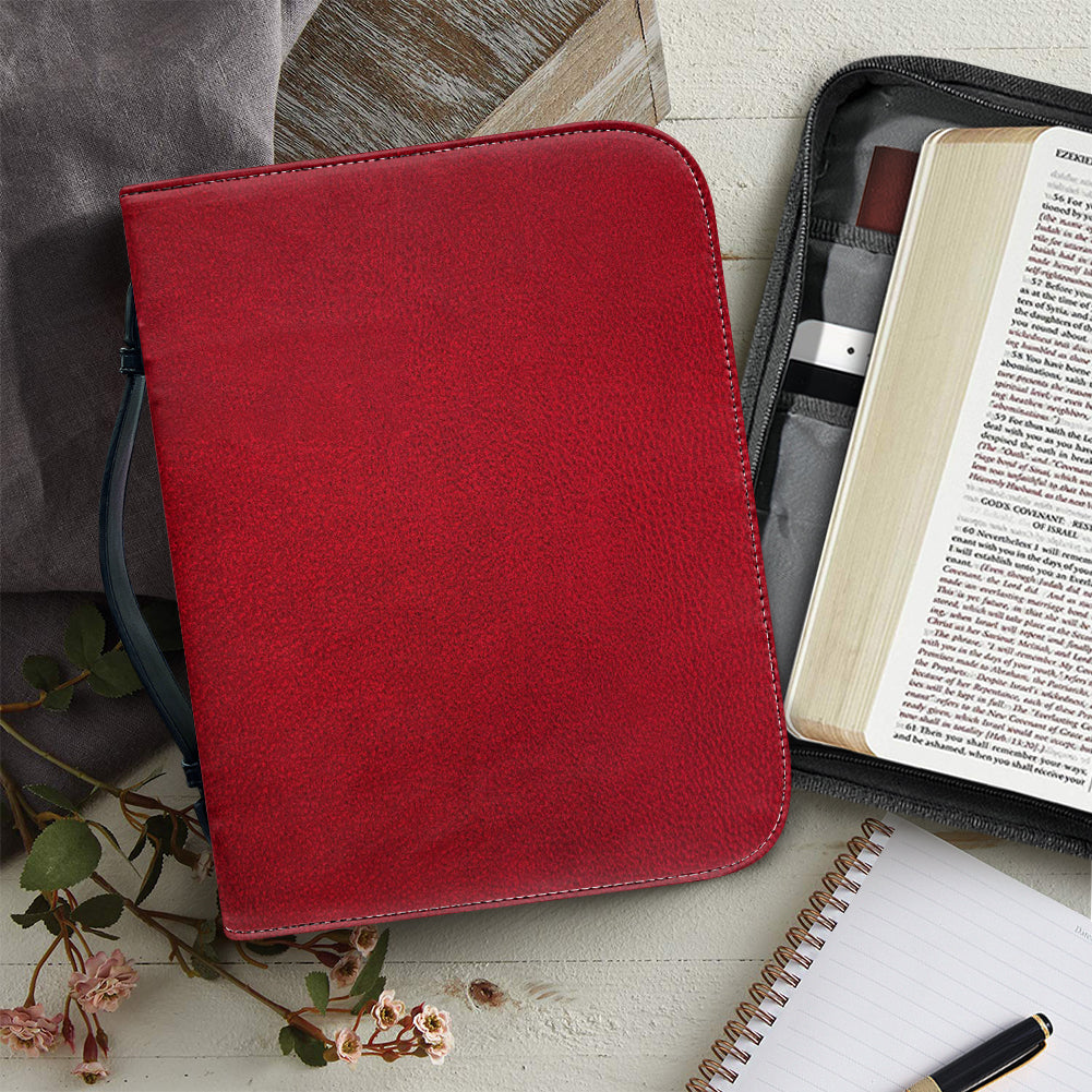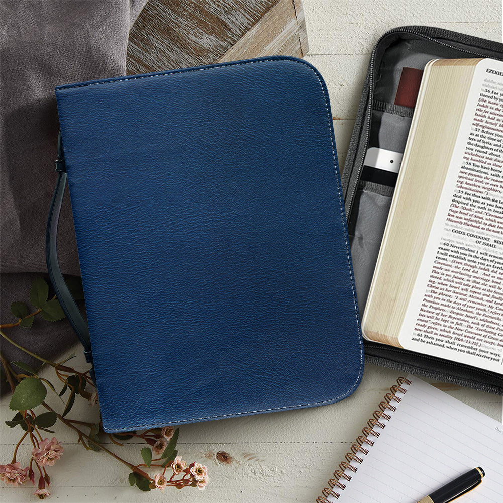 Our Bible cover is designed for convenience. It boasts a sturdy handle, comfortable to hold and securely stitched to the spine. You can also slip it into a larger bag, making it ideal for church, Bible study, and travel.