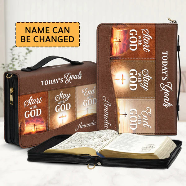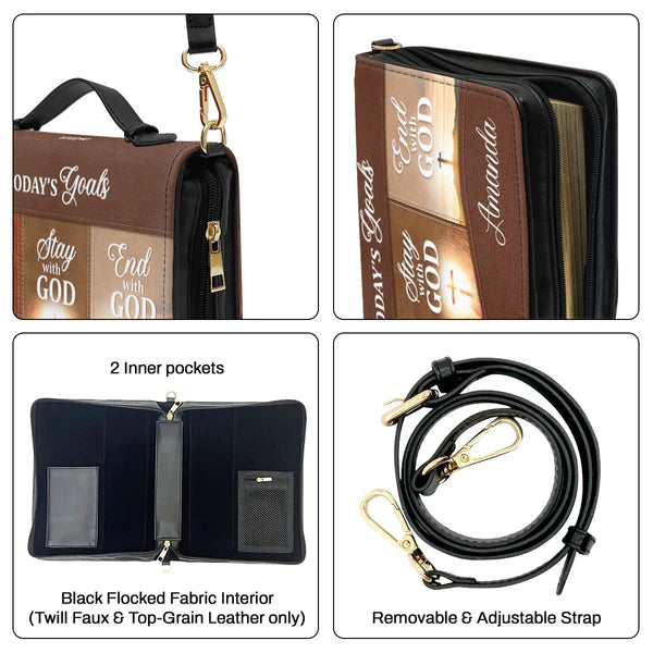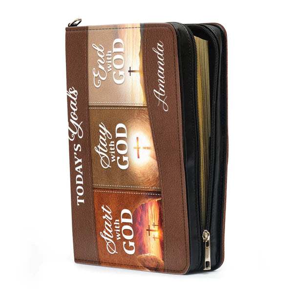 Christianartbag Bible Cover - Today's Goals Stay With GOD, Personalized Bible Cover, Customizable Premium Faux Leather Bible Covers - CABBBCV04030823.