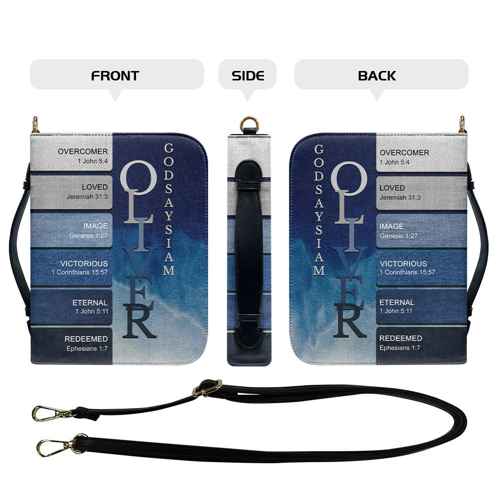 CHRISTIANARTBAG Bible Cover Denim - Uncover the sacred meaning of your name - Personalized Bible Cover - Christian Gifts