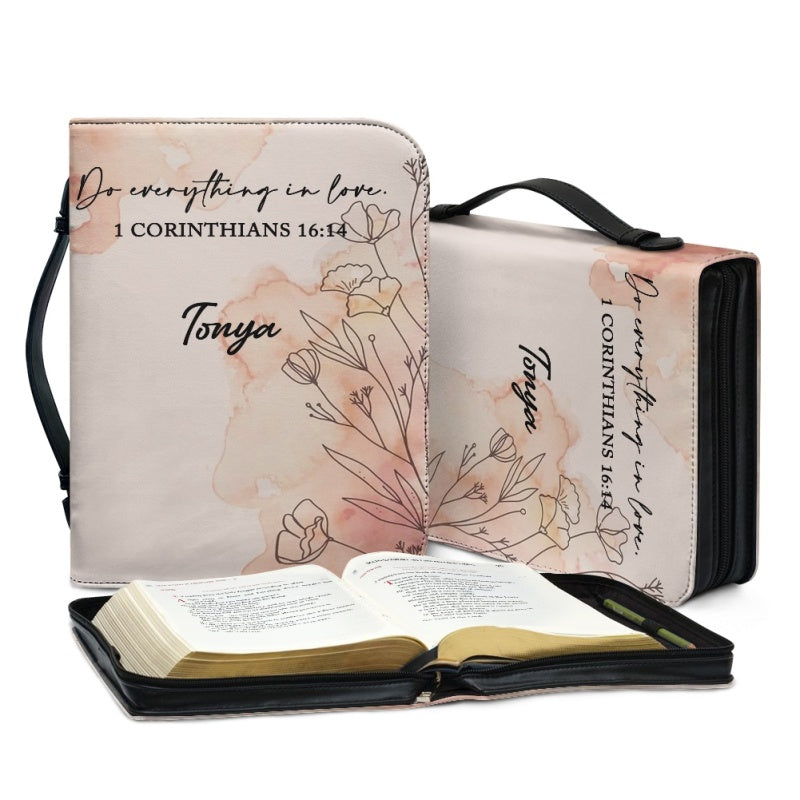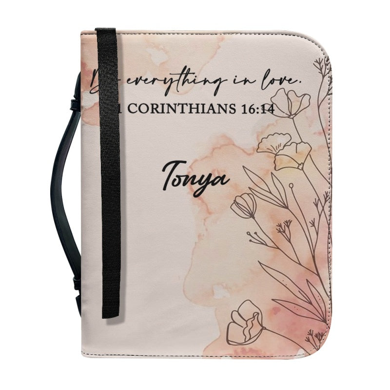 Christianartbag Bible Cover, Do Everything In Love 1 Corinthians 16:14 Bible Cover, Personalized Bible Cover, Flower Bible Cover, Christian Gifts, CAB07201123.
