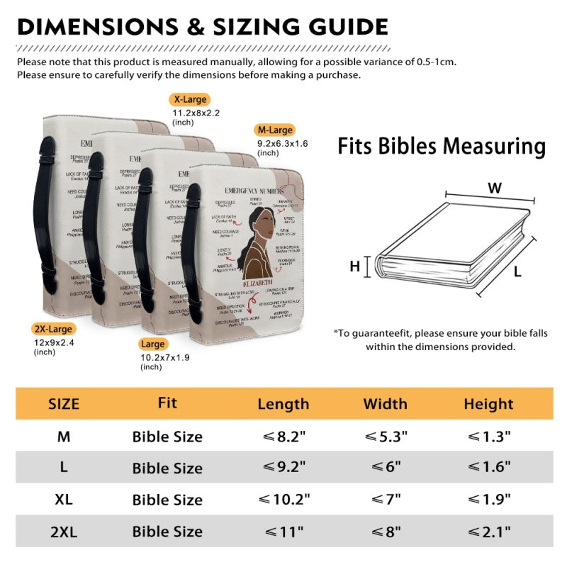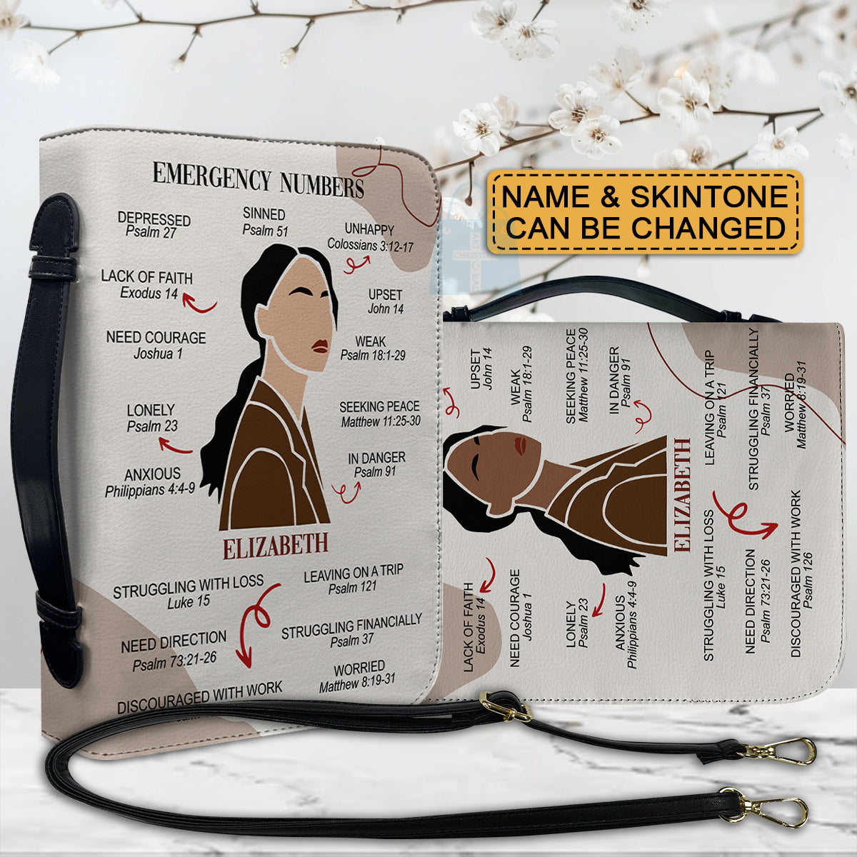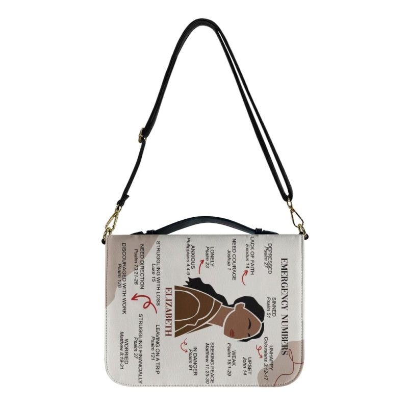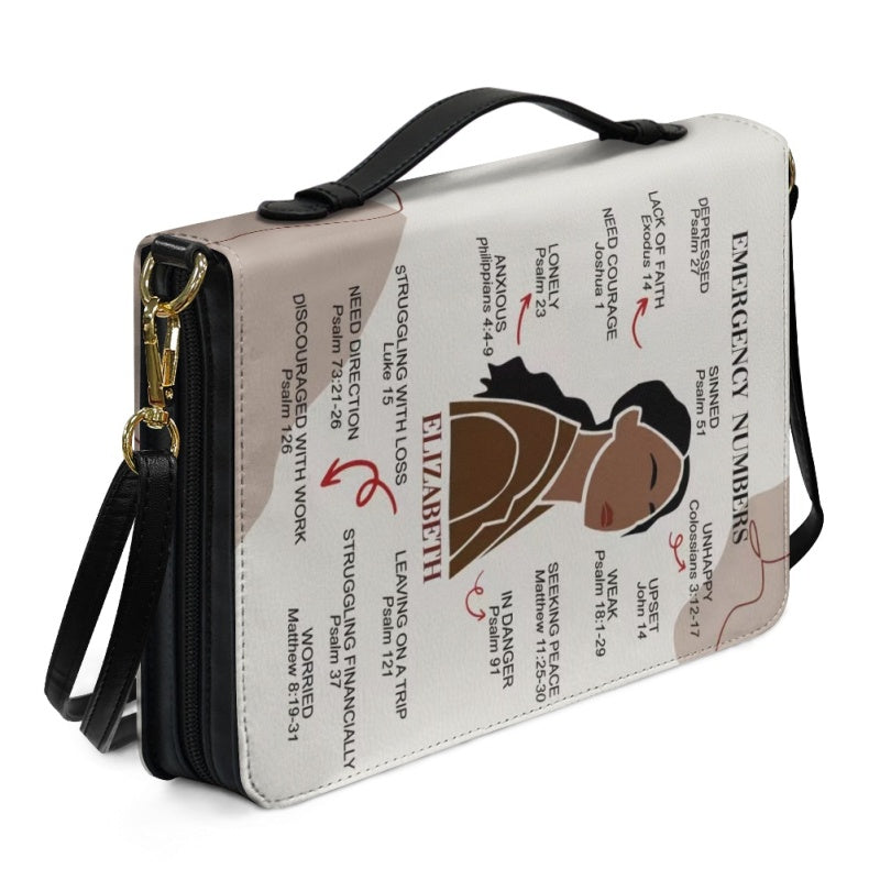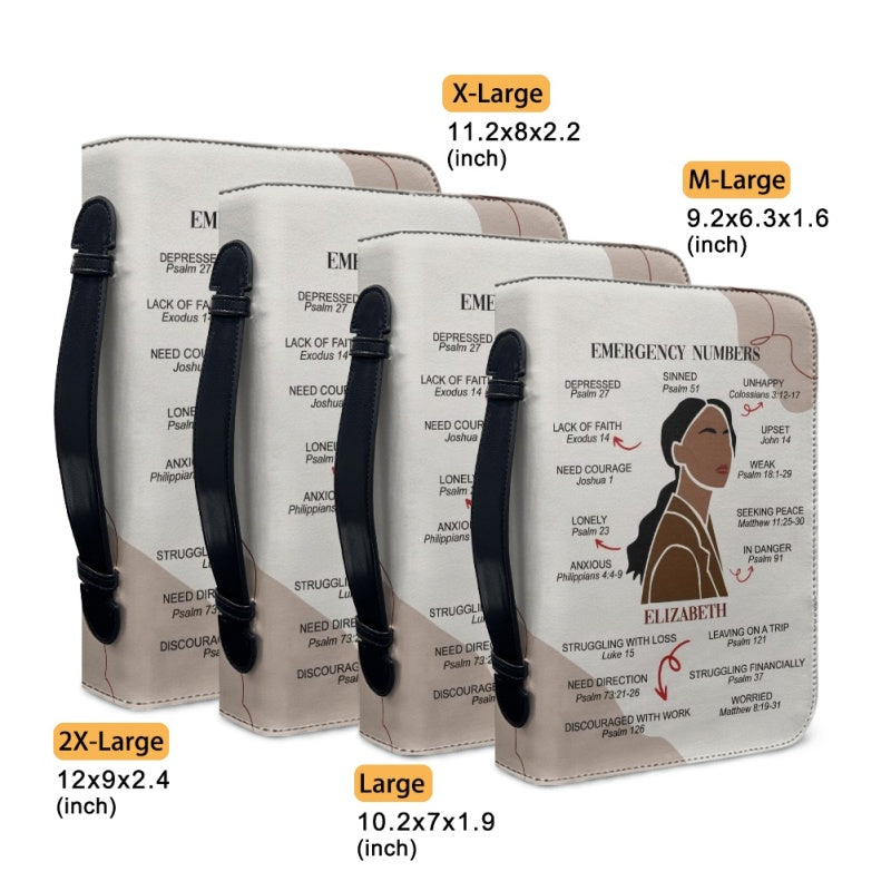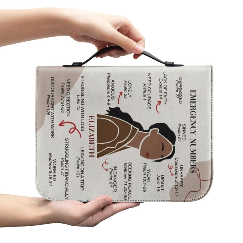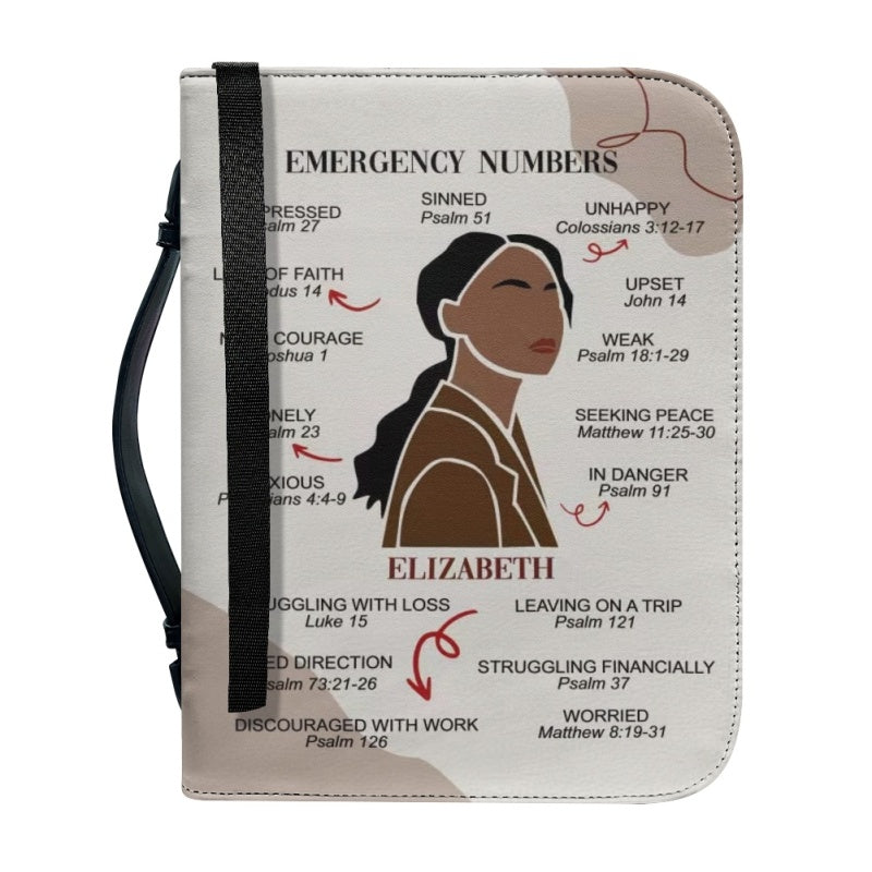 CHRISTIANARTBAG Bible Cover – "Emergency Numbers" Scripture Guide Design with Customizable Name, Skin Tone, and Hair Color | Spiritual Comfort and Guidance for Life's Challenges - CAB0130924
