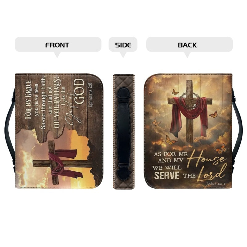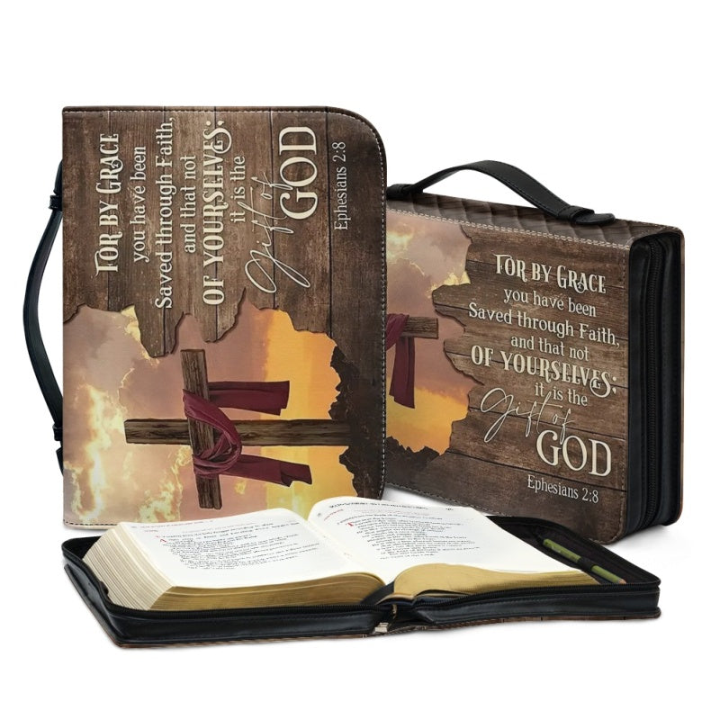 Christianartbag Bible Cover, For By Grace Bible Cover, Personalized Bible Cover, Christ Cross Dove Bible Cover, Christian Gifts, CAB10081123.