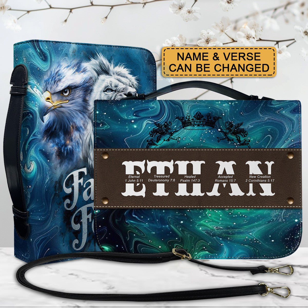 Featuring a striking lion's face and a powerful Scripture from Joshua 1:9, your cover boldly reminds you to be strong and courageous, free from fear, for the Lord is always with you. This heat-debossed design adds an elegant and inspirational touch.