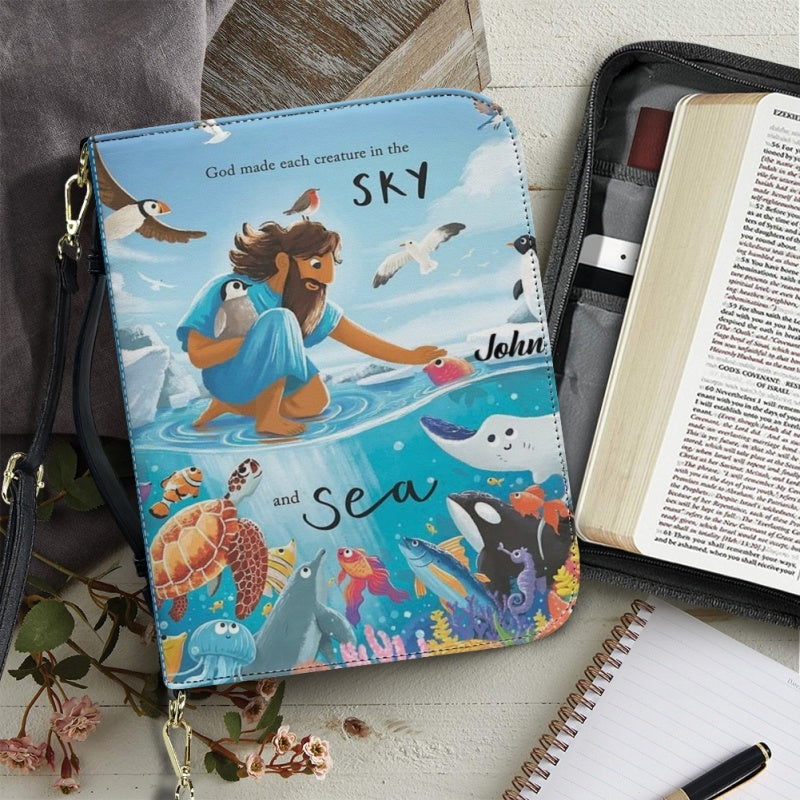 CHRISTIANARTBAG Bible Cover - GOD Made each Creature In The SKY and Sea - Personalized Bible Cover, CABBBCV0214824.