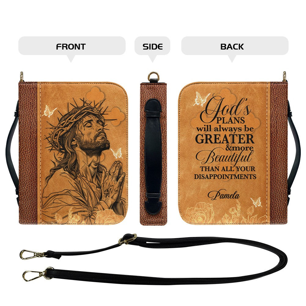 CHRISTIANARTBAG Bible Cover - God’s Plans will always be Greater - Custom Name and Bible Verse - Personalized Bible Cover, CABBBCV014925