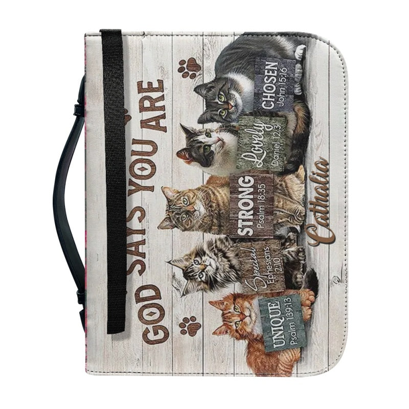 Christianartbag Bible Cover, God Says You Are Bible Cover, Personalized Bible Cover, Cat Bible Cover, Christian Gifts, CAB02251023.