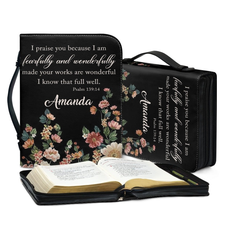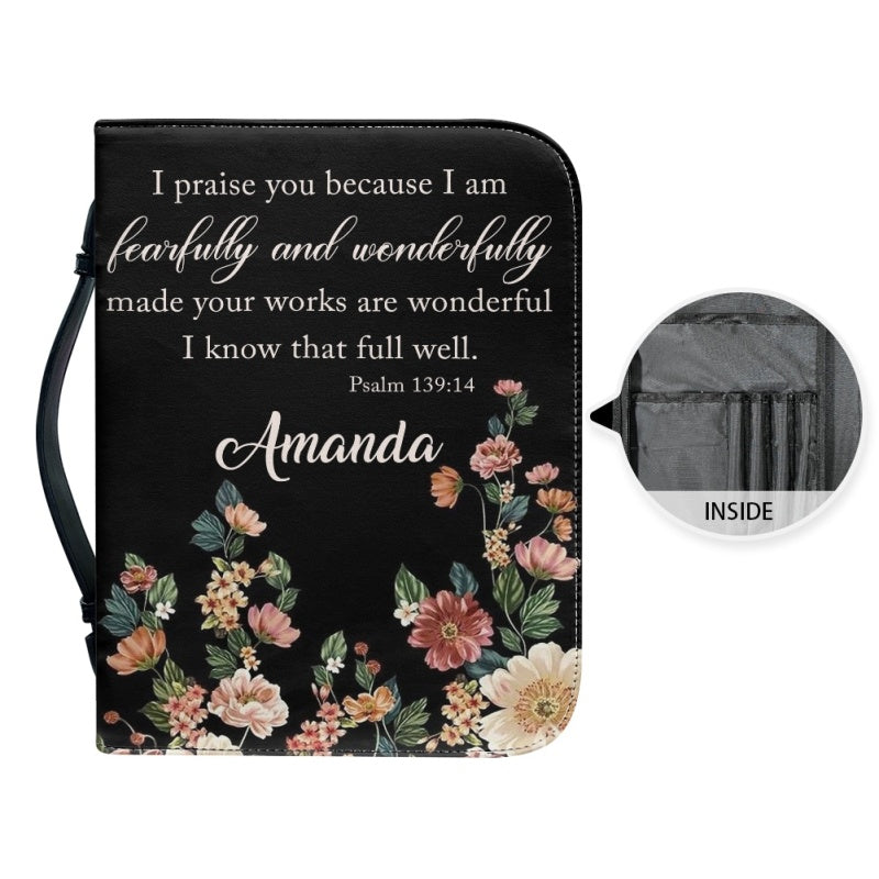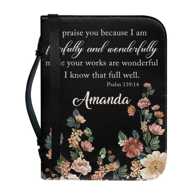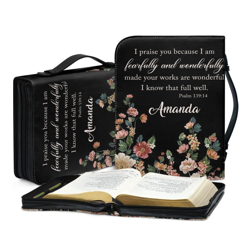 Christianartbag Bible Cover, I Praise You I Am Fearfully and Wonderfully Psalm 139:14 Her Bible Cover, Personalized Bible Cover, Flower Bible Cover, Christian Gifts, CAB02201123.