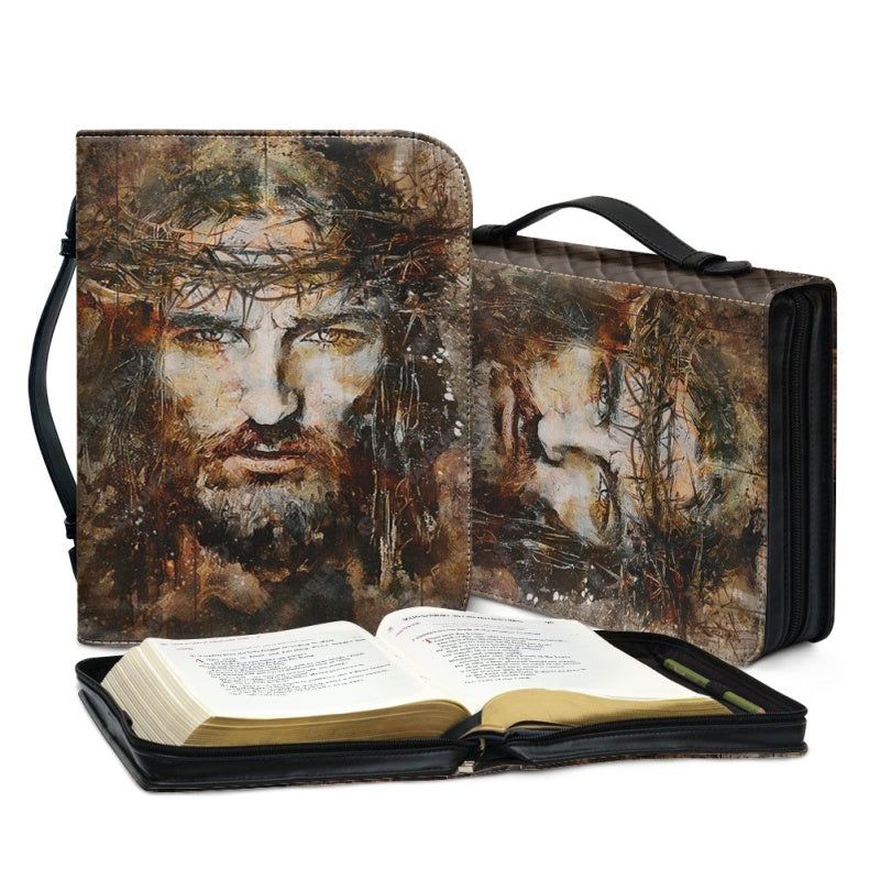 Christianartbag Bible Cover, Redeemer's Sacrifice Bible Cover with Personalized Name Option - Crown of Thorns Design, CAB01250224.