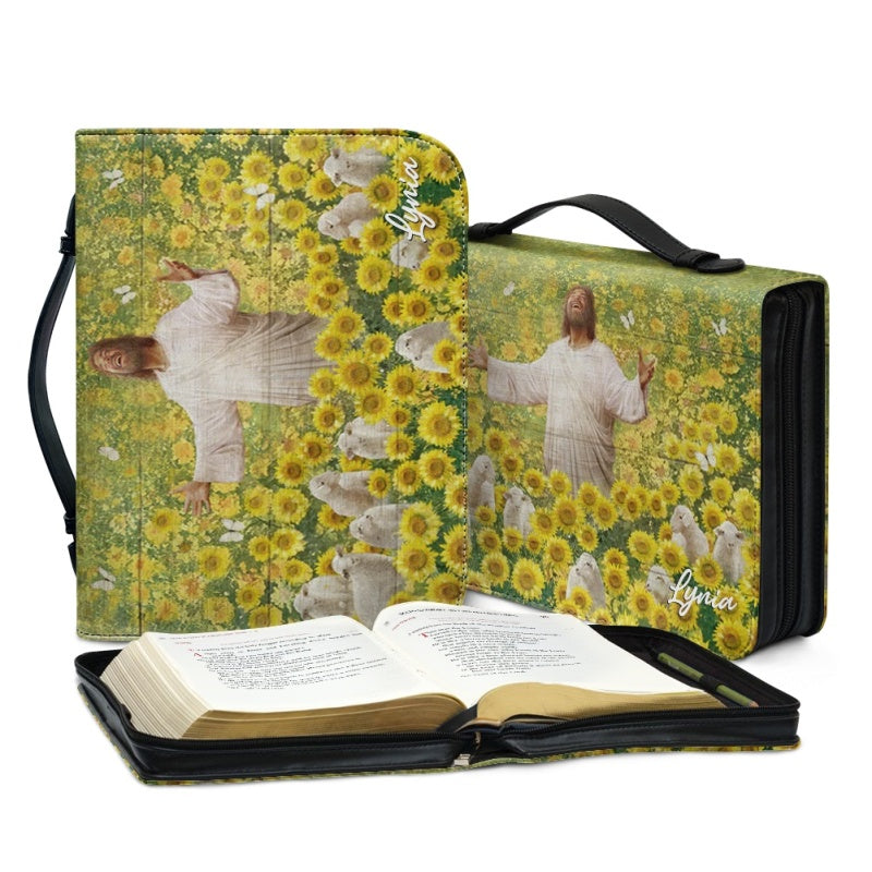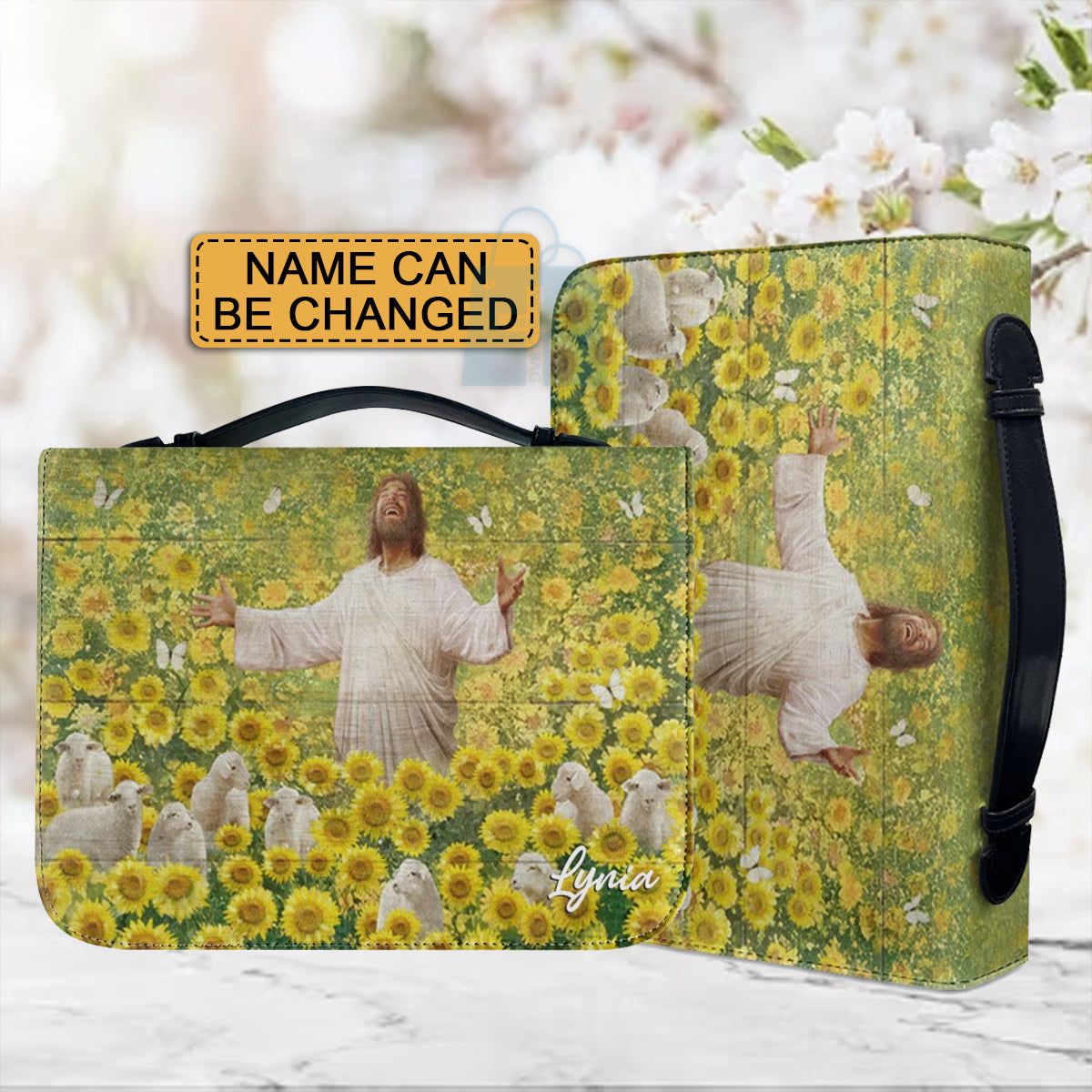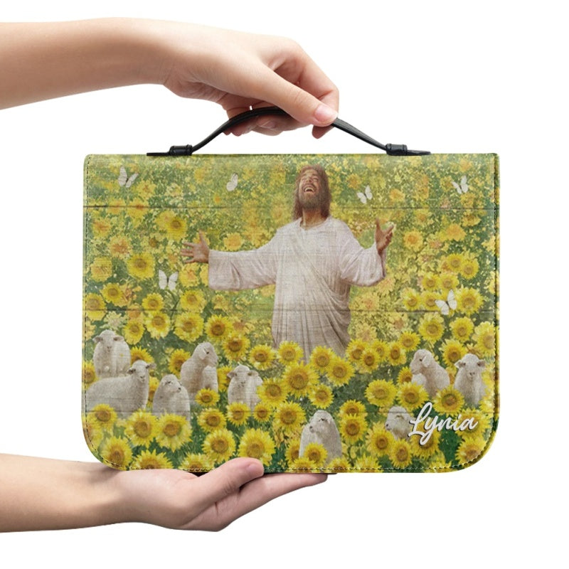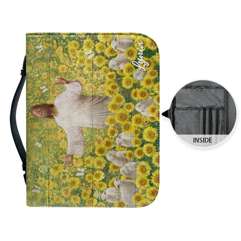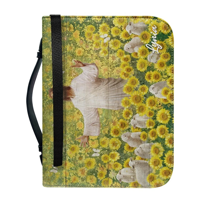 Christianartbag Bible Cover, Jesus With Sunflower Bible Cover, Personalized Bible Cover, Sunflower Bible Cover, Christian Gifts, CAB23210224.