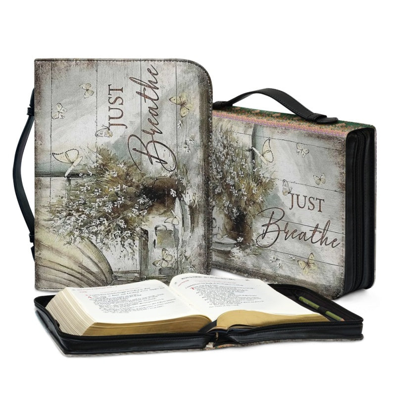 Christianartbag Bible Cover, Just Breathe Bible Cover, Personalized Bible Cover, Butterfly Flower Bible Cover, Christian Gifts, CAB01061123.