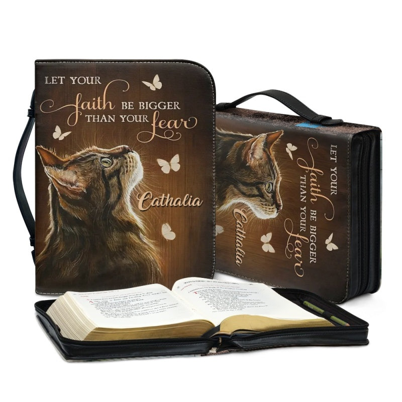 Christianartbag Bible Cover, Let Your Faith Be Bigger Than Your Lear Bible Cover, Personalized Bible Cover, Cat Bible Cover, Christian Gifts, CAB04251023.