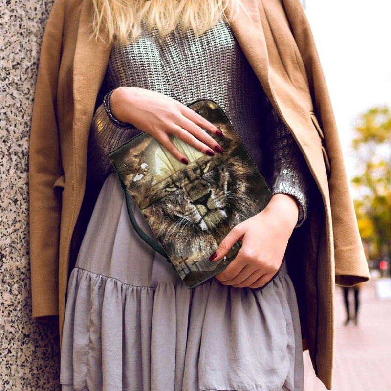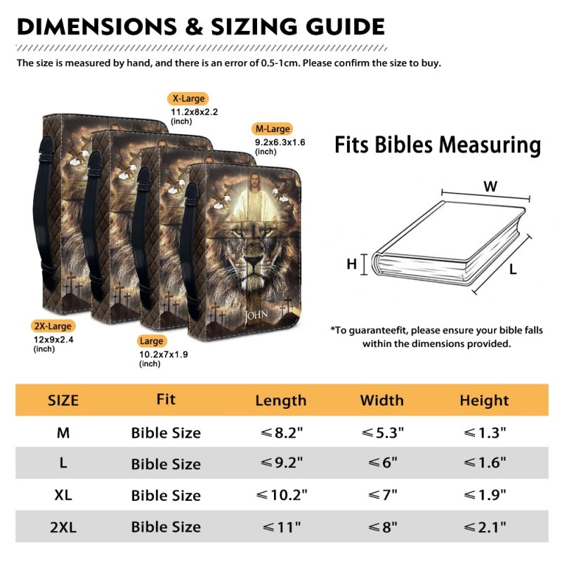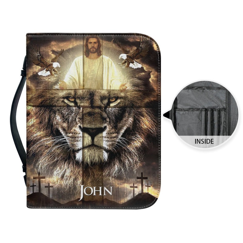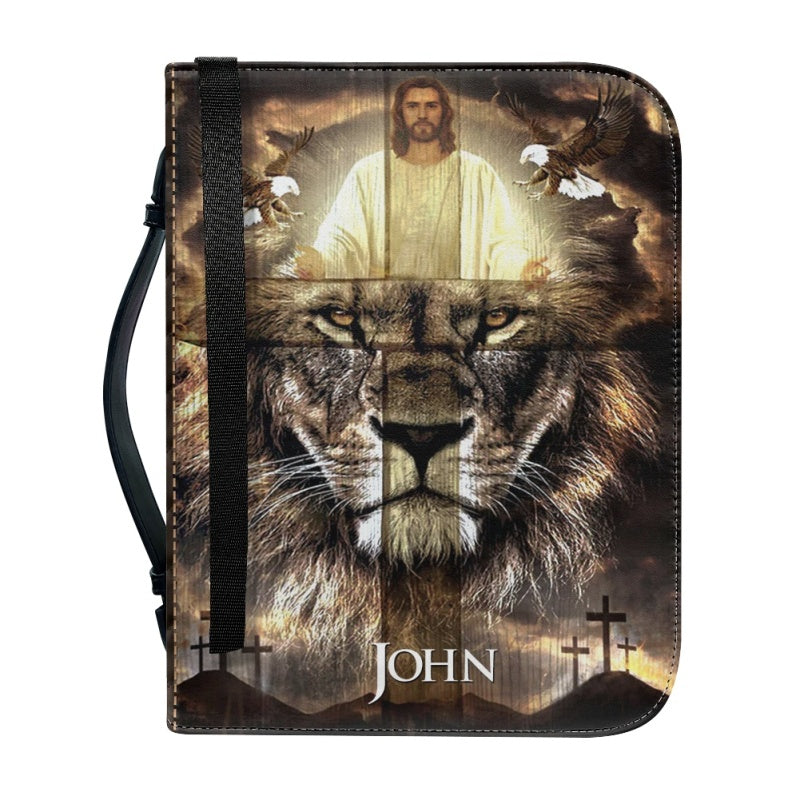 Christianartbag Bible Cover, Divine Guardian Bible Cover with Lion and Savior Imagery - Personalized Name Option, CAB02022324.