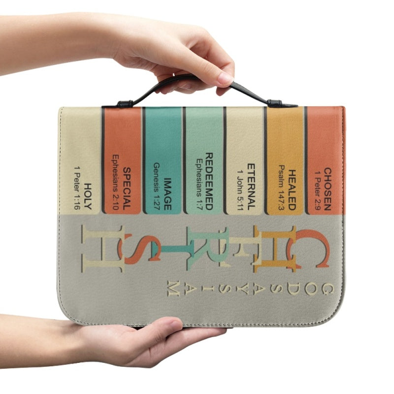 Our Bible cover is designed for convenience. It boasts a sturdy handle, comfortable to hold and securely stitched to the spine. You can also slip it into a larger bag, making it ideal for church, Bible study, and travel.