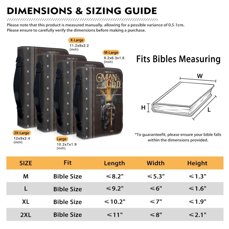 Choose from our four available sizes to ensure a snug fit for your Bible: