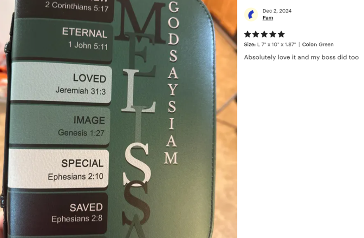 I ordered a Bible case and I like how it turned out. Everything was clean, and legible. It wasn't crushed during the shipping process. But there were 2 unexpected changes made on the case, 2 of the verses that I chose from the available options were changed. Disappointing, but I still like how the case turned out