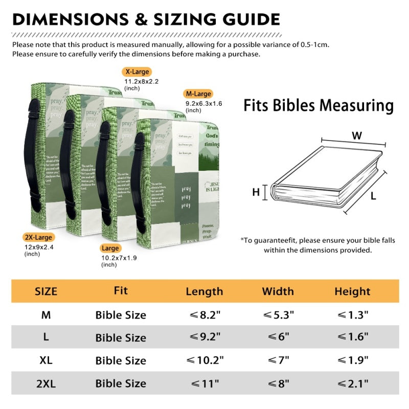 Our Bible cover is designed for convenience. It boasts a sturdy handle, comfortable to hold and securely stitched to the spine. You can also slip it into a larger bag, making it ideal for church, Bible study, and travel.