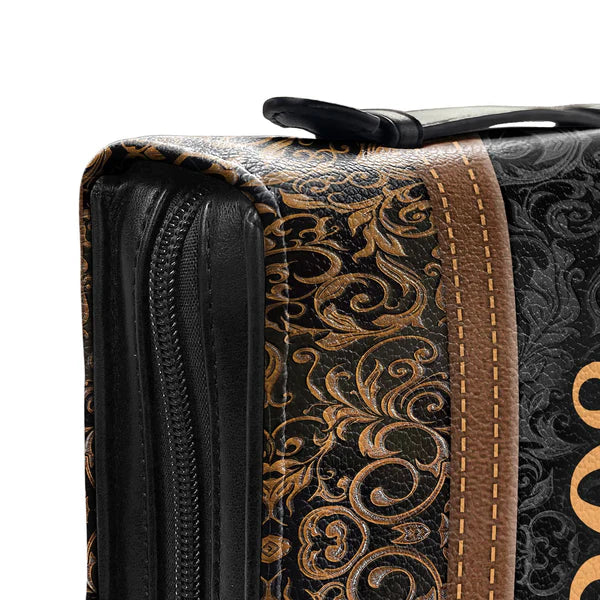 Our Bible cover is designed for convenience. It boasts a sturdy handle, comfortable to hold and securely stitched to the spine. You can also slip it into a larger bag, making it ideal for church, Bible study, and travel.