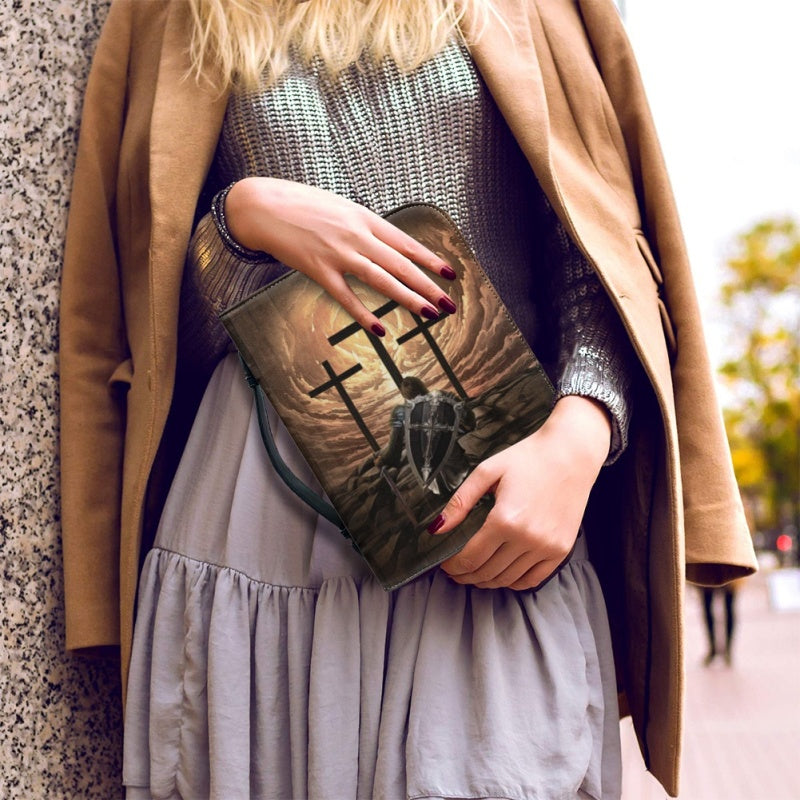 A robust metal zipper, adorned with a laser-engraved cross, ensures your Bible remains clean and protected at all times. Your faith-inspired cover serves as a constant reminder of the Lord's strength and encouragement, making it a thoughtful and meaningful gift.