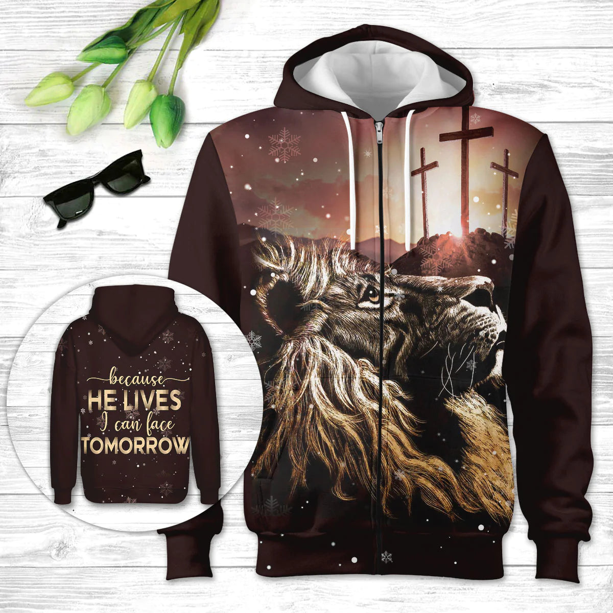 Christianartbag Clothing, Because He Lives I Can Face Tomorrow, Christian 3D T-Shirt, Christian 3D Hoodie, Christian 3D Sweater, Unisex 3D T-Shirt.