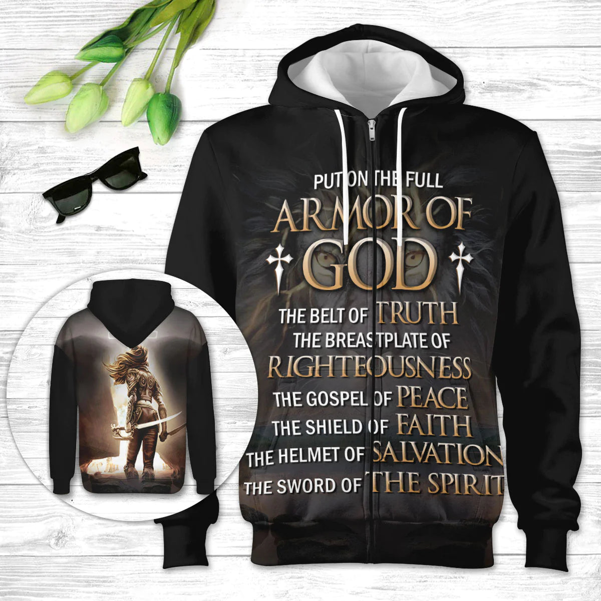 Christianartbag Clothing, Put On The Full Armor of God, Cross And Lion, Christian 3D T-Shirt, Christian 3D Hoodie, Christian 3D Sweater, Unisex 3D T-Shirt.
