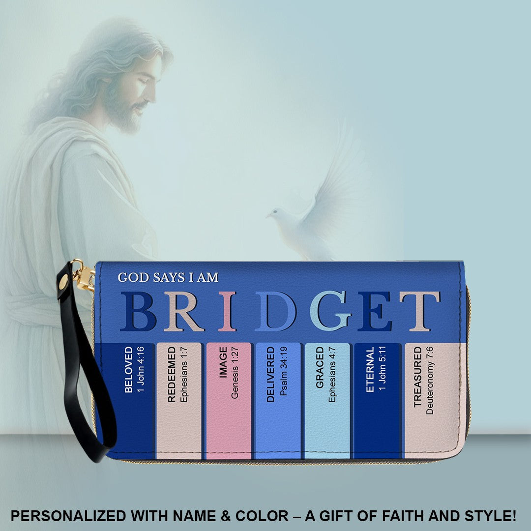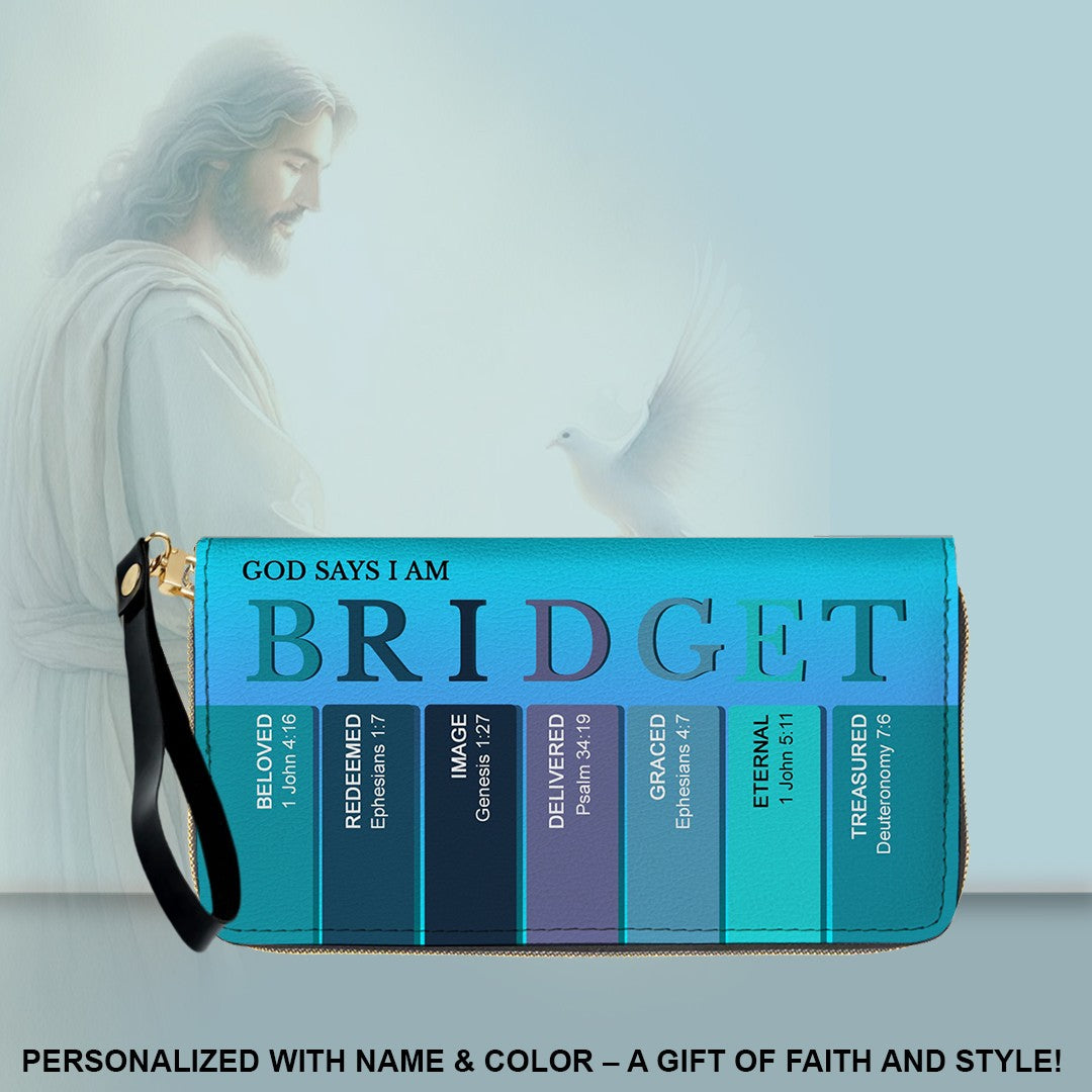 Introducing our Zippered Leather Clutch Purse for Women – Personalized Name – Christian Gifts For Women. This exquisite clutch purse is not just a stylish accessory; it's a testament to faith and a perfect companion for those who believe in God. With its sleek design and meaningful personalization option, this clutch purse is a unique addition to your collection.