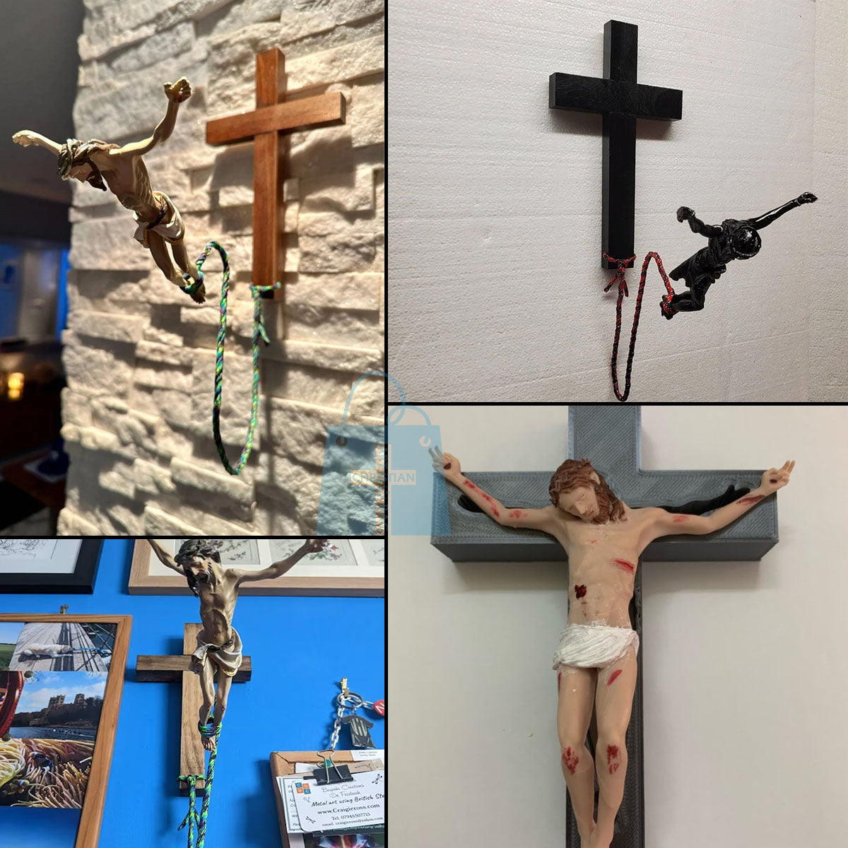 Christianartbag Decor, The Original BunJesus, Bungee Jumping Jesus, Black Bunjesus, Funny Decor Christian.