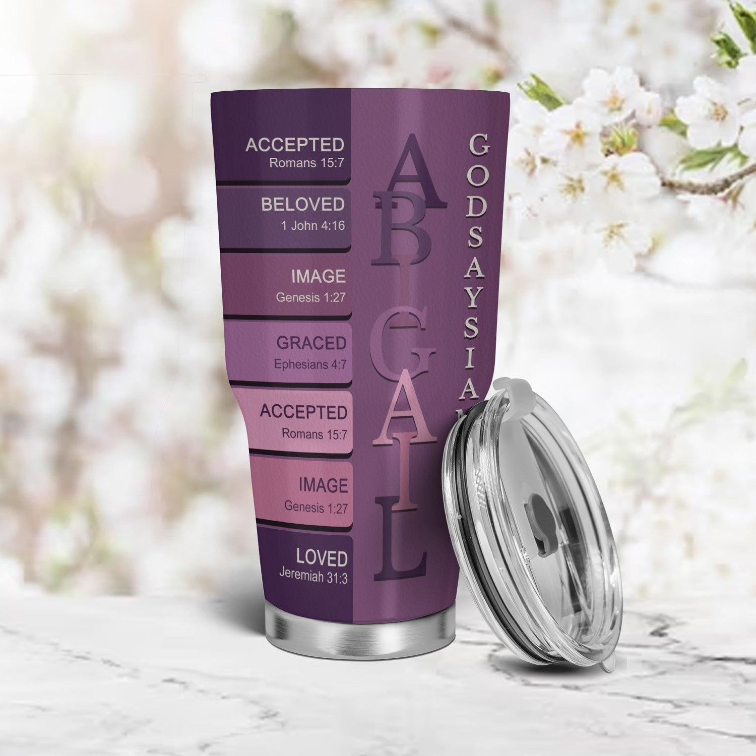 Christianartbag Drinkware, Uncover The Sacred Meaning Of Your Name, Personalized Mug, Purple Tumbler, CABTB01110724.