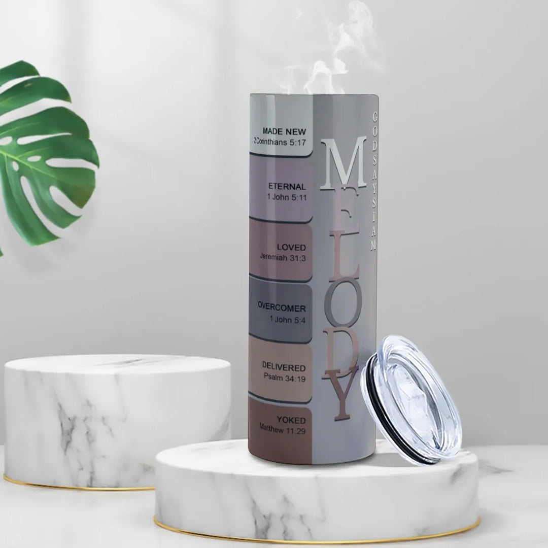 The Tumbler 20oz, featuring a stainless steel construction with double-wall vacuum insulation, ensures that your beverages remain at the perfect temperature for extended periods. Whether you're savoring a hot cup of coffee or enjoying an iced tea, this tumbler keeps your drinks delightfully hot or refreshingly cold. Its spill-proof lid and ergonomic design make it the perfect companion for your daily commute, outdoor adventures, or quiet moments of reflection. Customize it with captivating Christian artwork and personalize it with your name, initials, or a special scripture to create a tumbler that resonates with your faith.