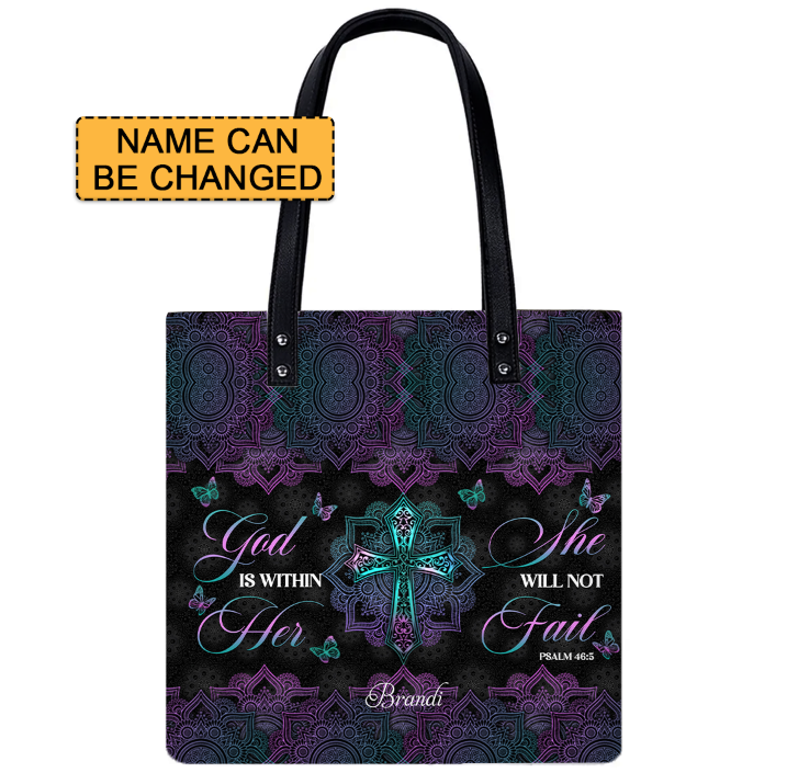 Christianartbag Handbags, God Is Within Her She Will Not Fail Psalm 46 5 Mandala Leather Handbag, Handbag Design, Personalized Leather Handbag, Gifts for Women, CABLTB0103123.
