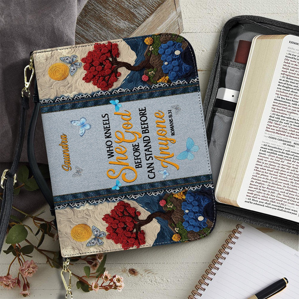Christianartbag Handbags, She Who Kneels Before God Romans 8 31, Embroidered Handbag Design, Monogram Leather Handbag, Gifts for Women, CABLTB014825