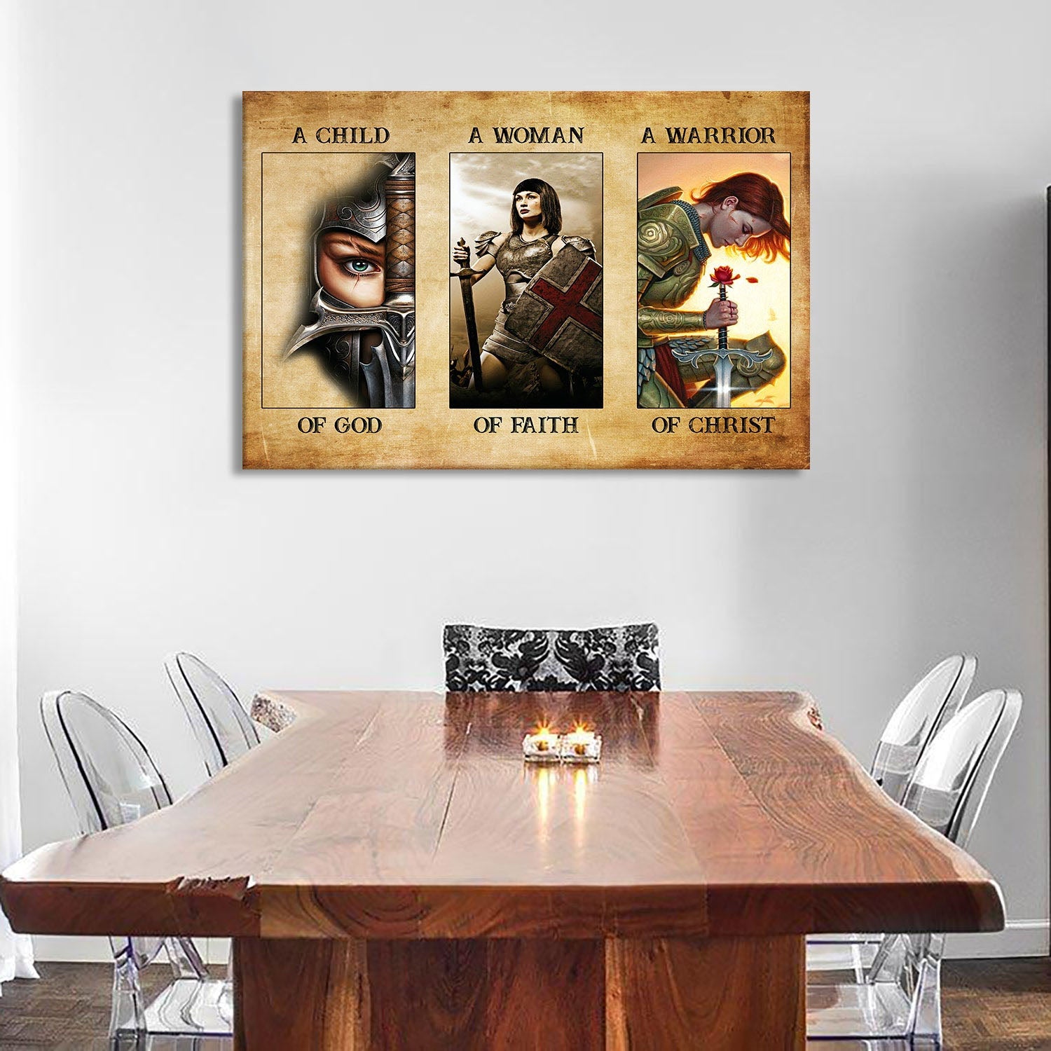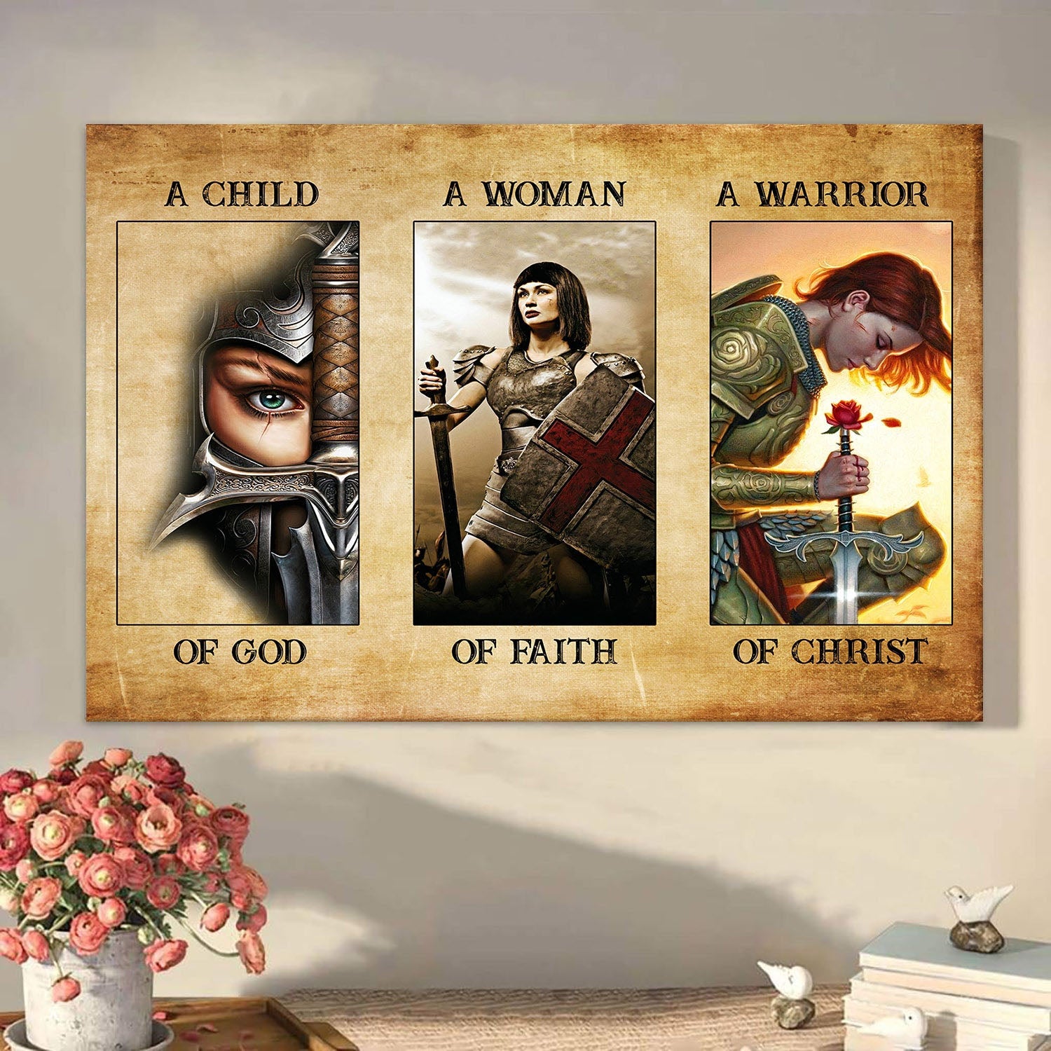 Christianartbag Home Decor, A Child Of God A Woman Of Faith A Warrior Of Christ Canvas Wall Art Canvas Poster, CAB02270224.