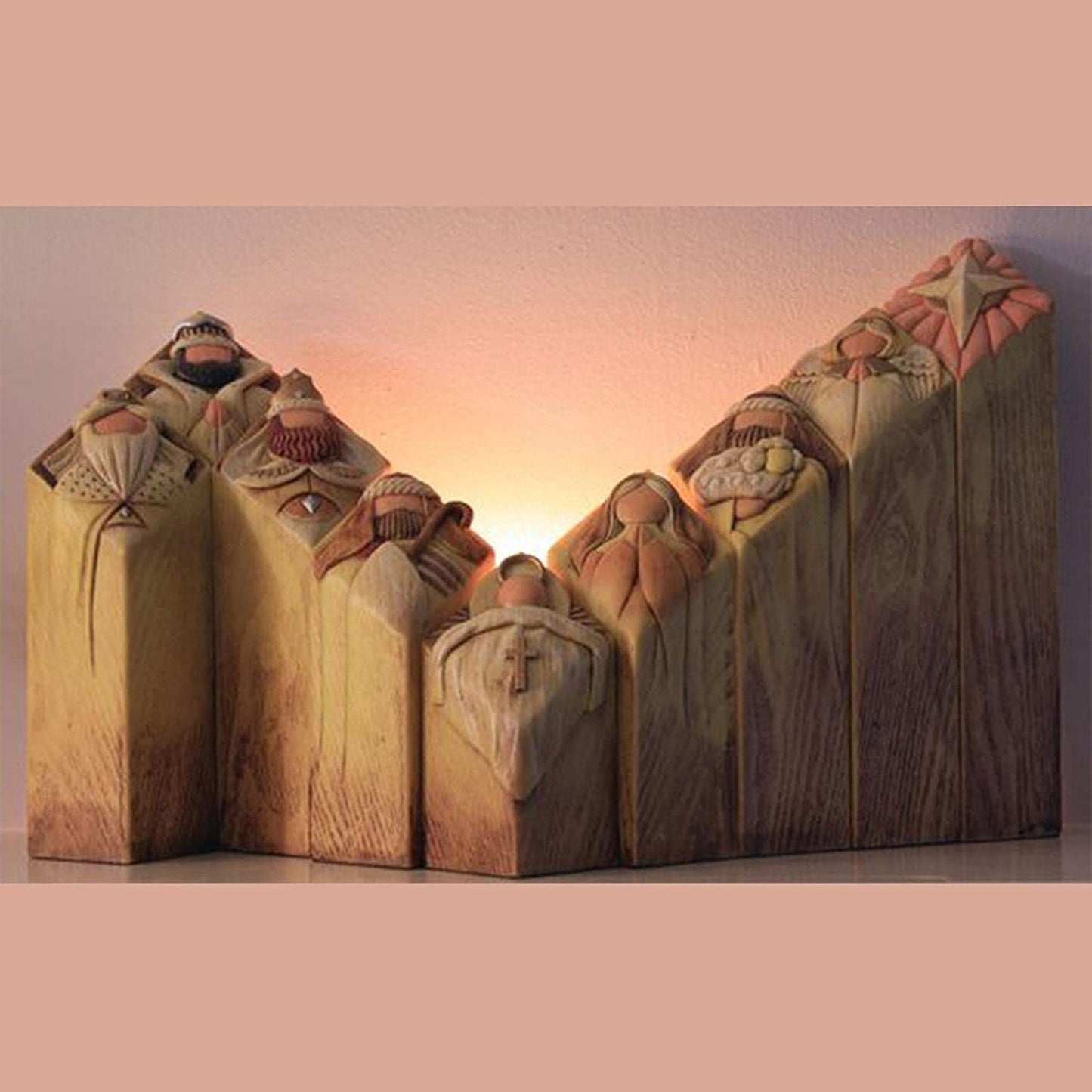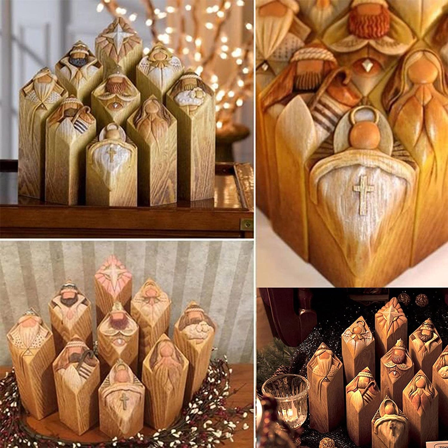 Christianartbag Home Decor, Heaven Nativity Tree Pillar Statues 9 Pcs Set of Wooden Collection Figurines of Pillars of Nativity Setcolumn Statues Decoration