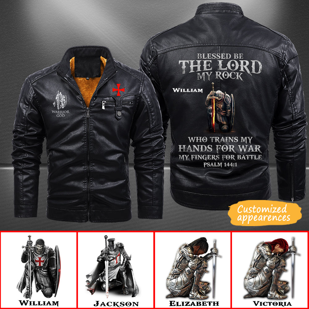 Christianartbag Leather Jacket, Blessed Be The Lord My Rock PSALM 144:1 Personalized Leather Jacket, Warm Jacket, Winter Outer Wear, Gift for Him, CABJKL03061123.
