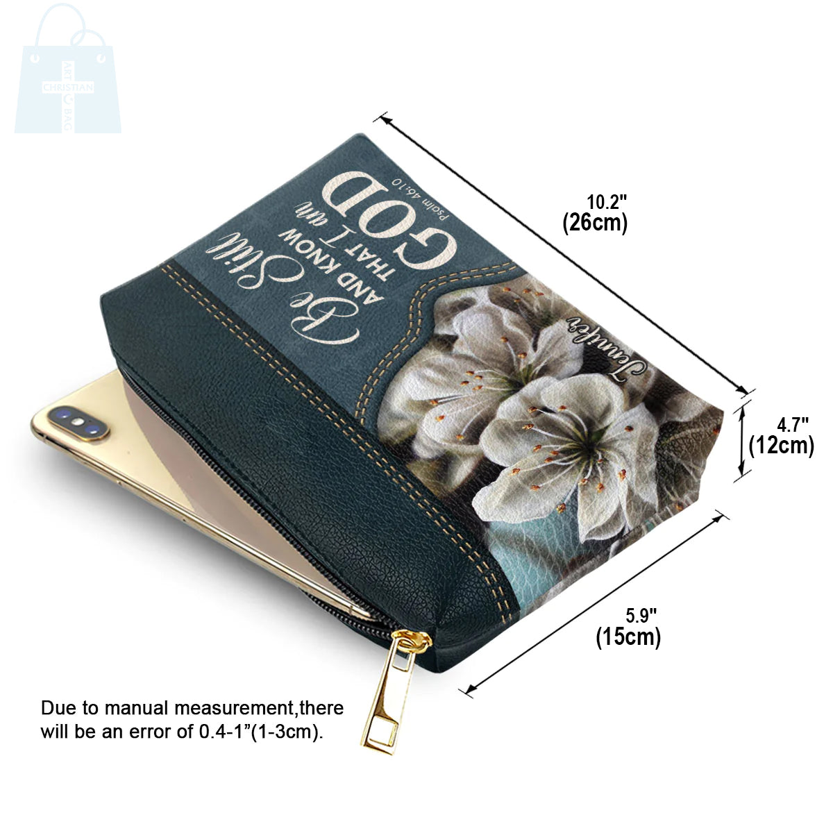 Christianartbag Makeup Cosmetic Bag, Be Still And Know That I Am God, Christmas Gift, Personalized Leather Cosmetic Bag.