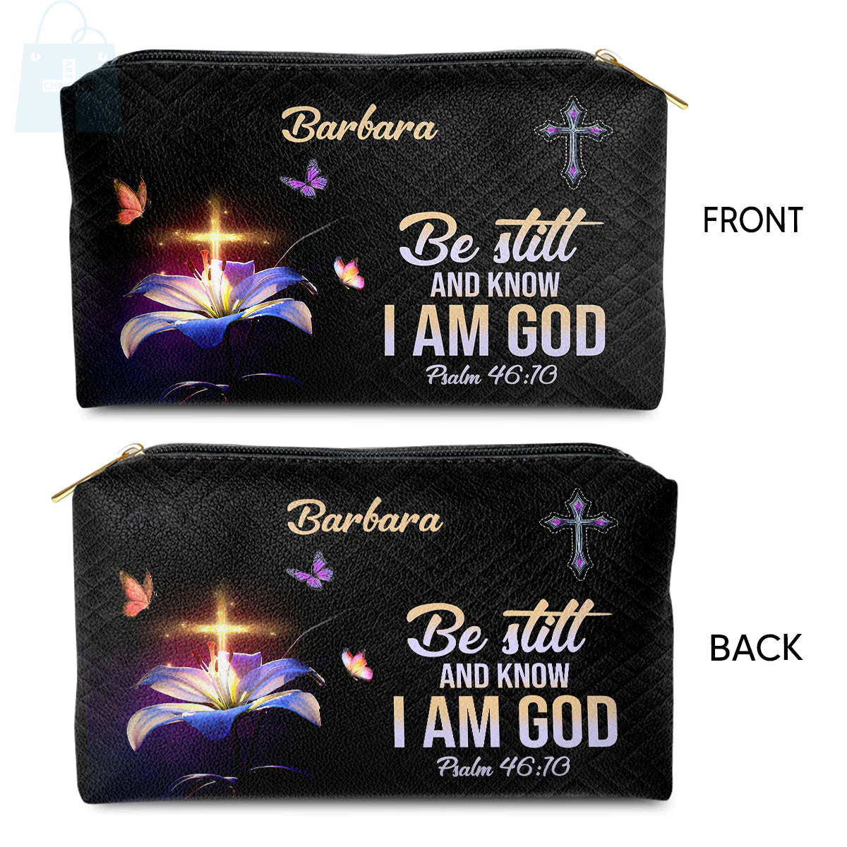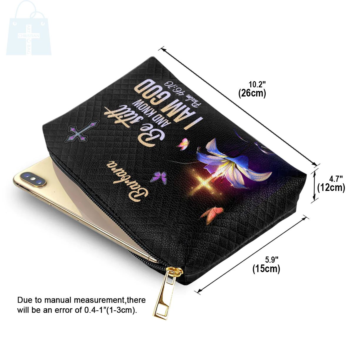 Christianartbag Makeup Cosmetic Bag, Be Still And Know That I Am God, Christmas Gift, Personalized Leather Cosmetic Bag.