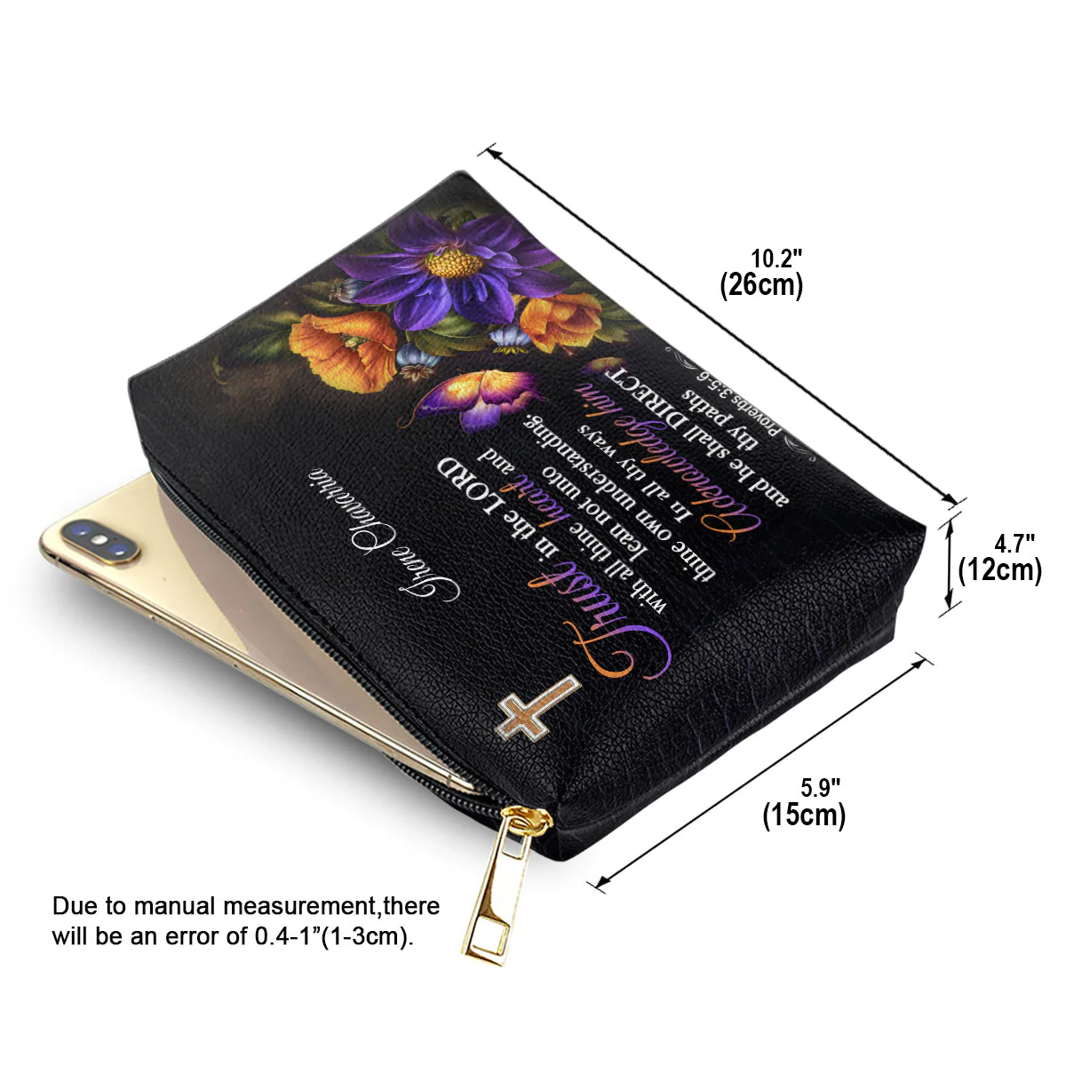 Christianartbag Makeup Cosmetic Bag, Trust In The Lord With All Thine Heart, Christmas Gift, Personalized Leather Cosmetic Bag.