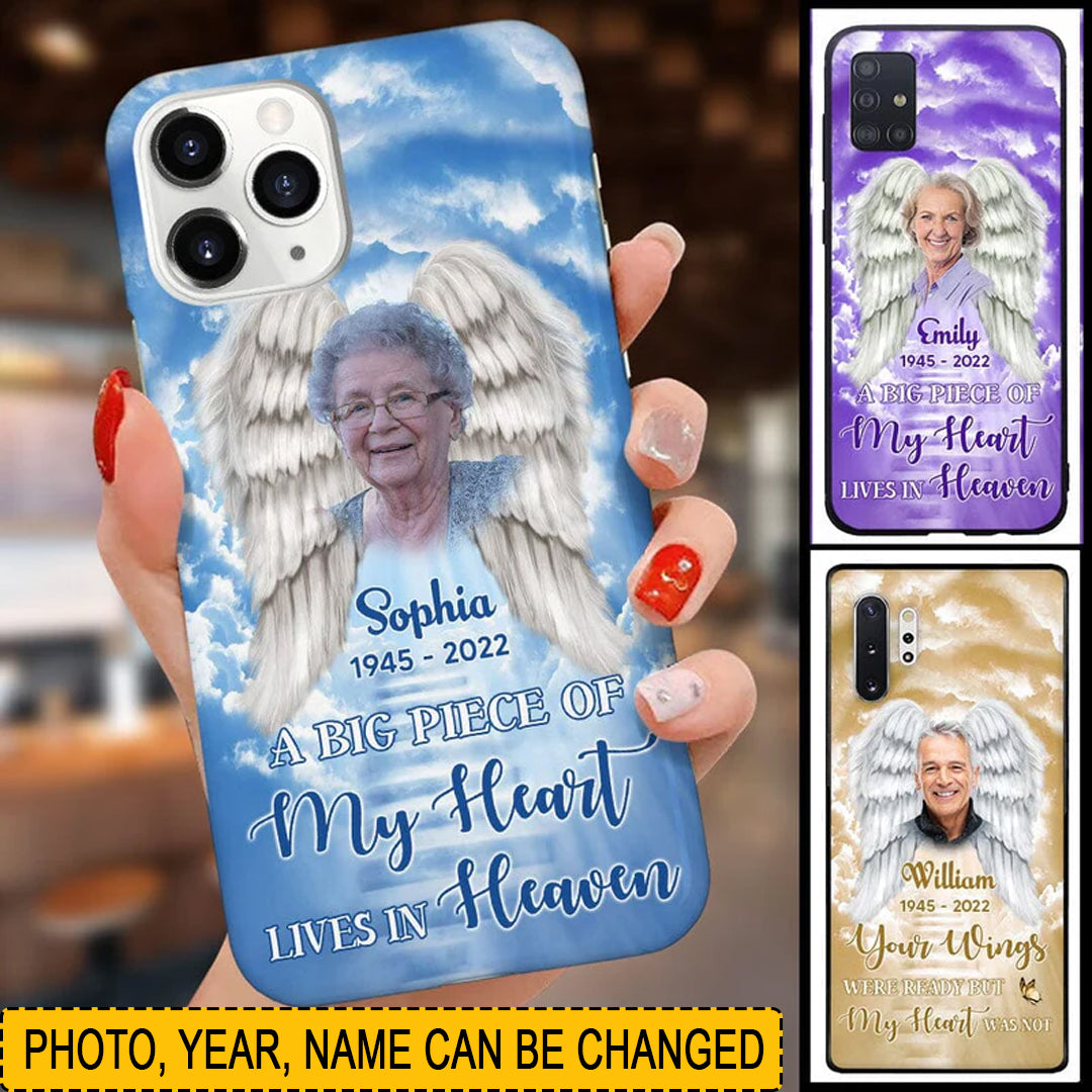 Christianartbag Phone Case, Memorial Upload Photo Wings, A Big Piece Of My Heart Lives In Heaven Personalized Phone Case.