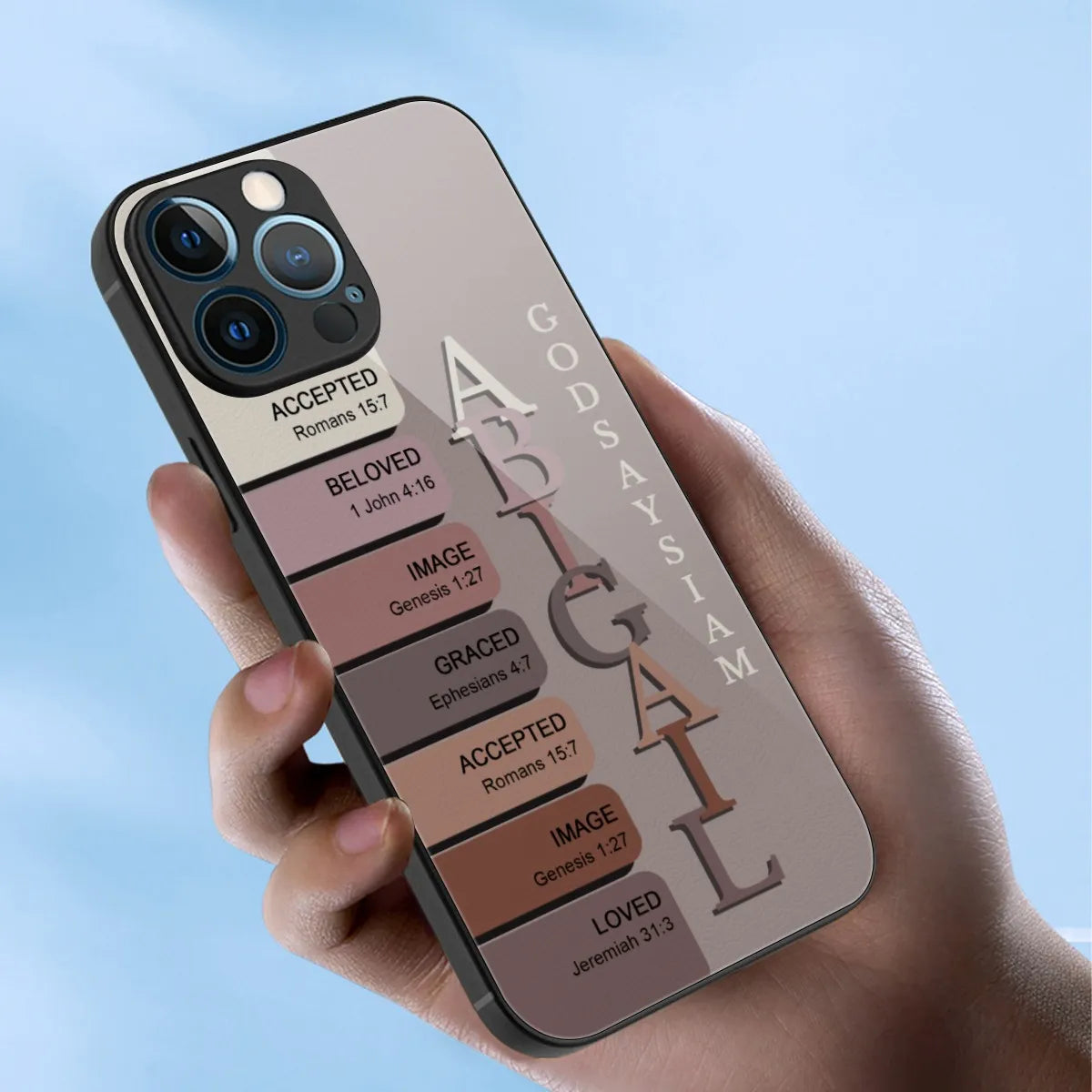 I love my customized iPhone 15 Pro Max cover! The scripture for each letter of my name are a reminder of what God says I am! I’ve received many compliments for this beautiful shades of purple cover!!