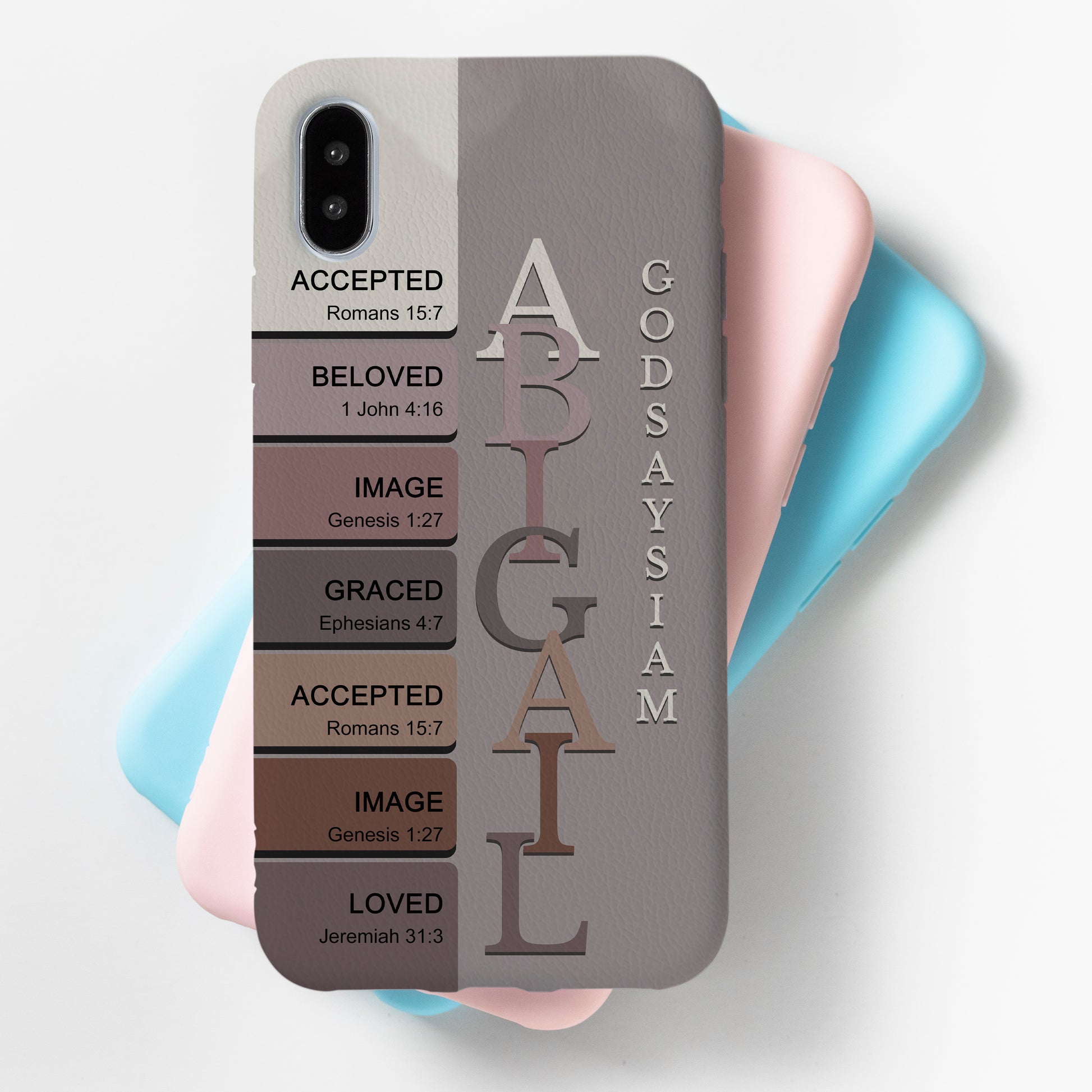 this case personalized with my name but every letter of my name represents a passage of scripture is colorful and functional and I love it